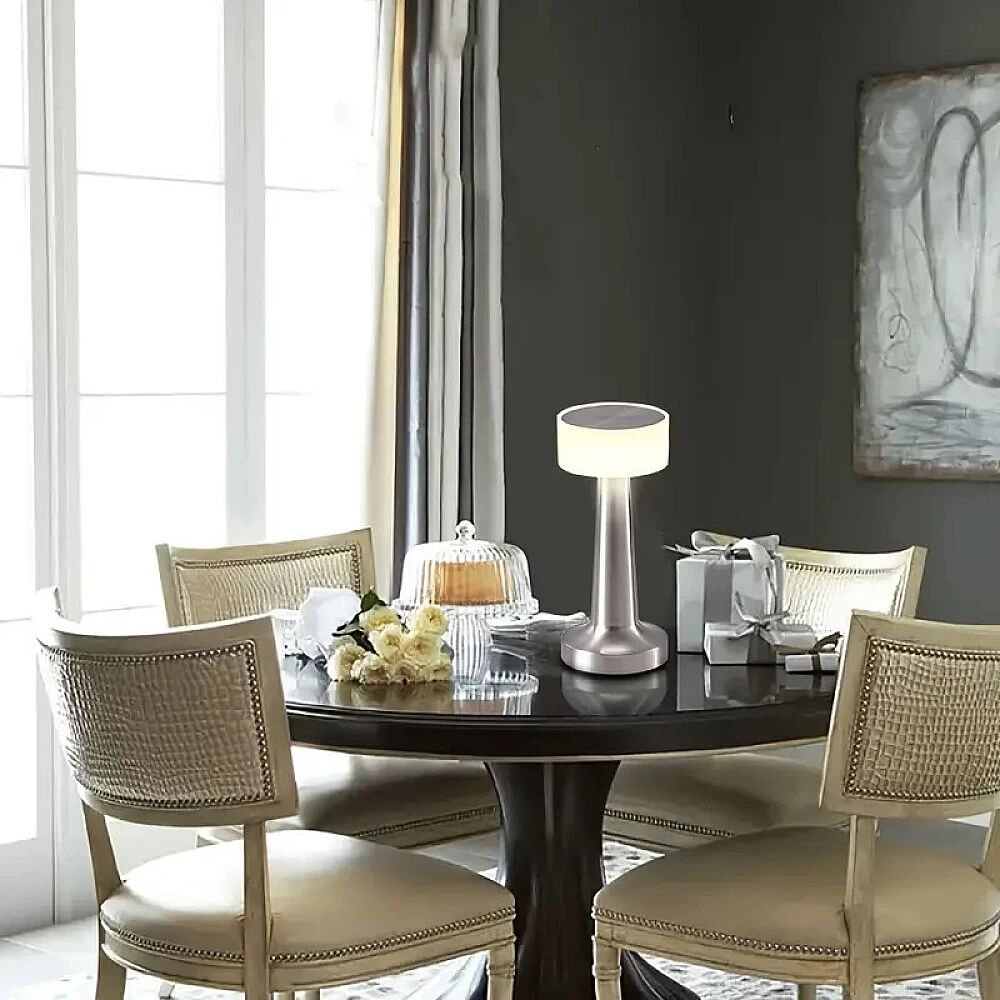 أبجورة طاولة ببطارية بدون أسلاك تعمل باللمس - فضي