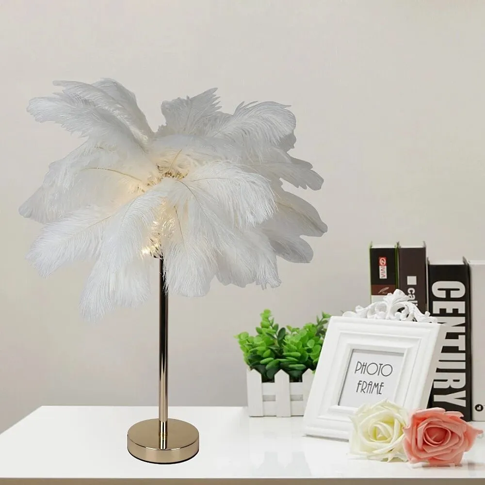 أنت تراجع:أبجورة طاولة بتصميم ريش نعام - ابيض