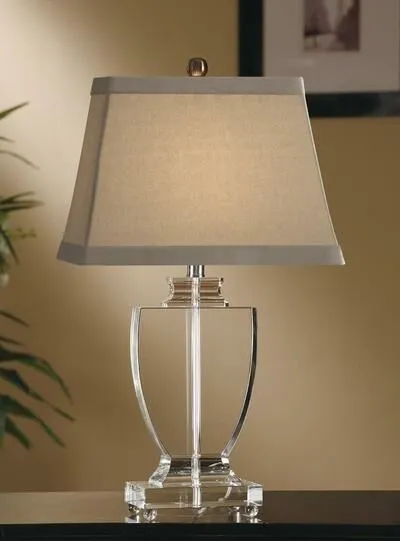 | الخامات | كريستال رصاصي للقاعدة وكتان لغطاء المصباح |