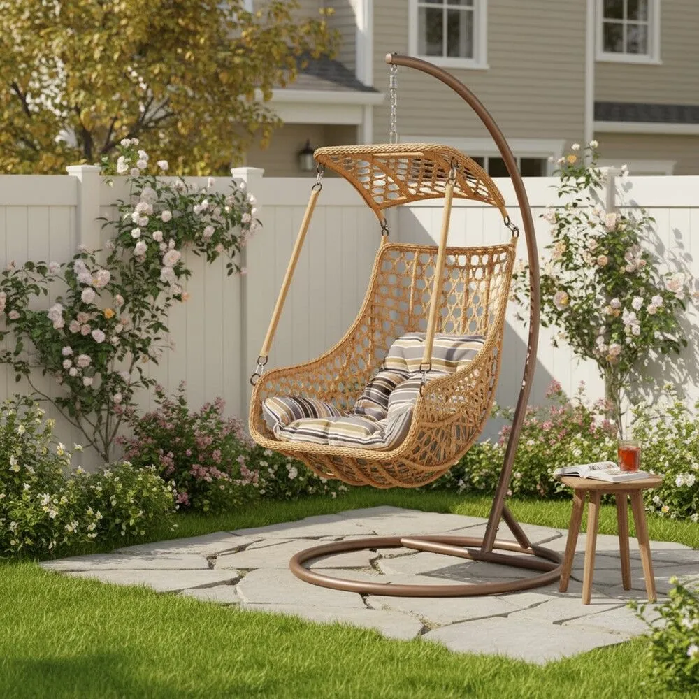 أرجوحة حديقة أنيقة تضيف لمسة من المتعة والاسترخاء إلى مساحتك الخارجية، بتصميم مريح ومتين يناسب جميع الأعمار. مصنوعة من معدن قوي وراتان صناعي عالي الجودة لضمان المتانة ومقاومة العوامل الجوية. مثالية للجلوس، القراءة، أو الاستمتاع بنسيم الطبيعة في أوقات الفراغ.