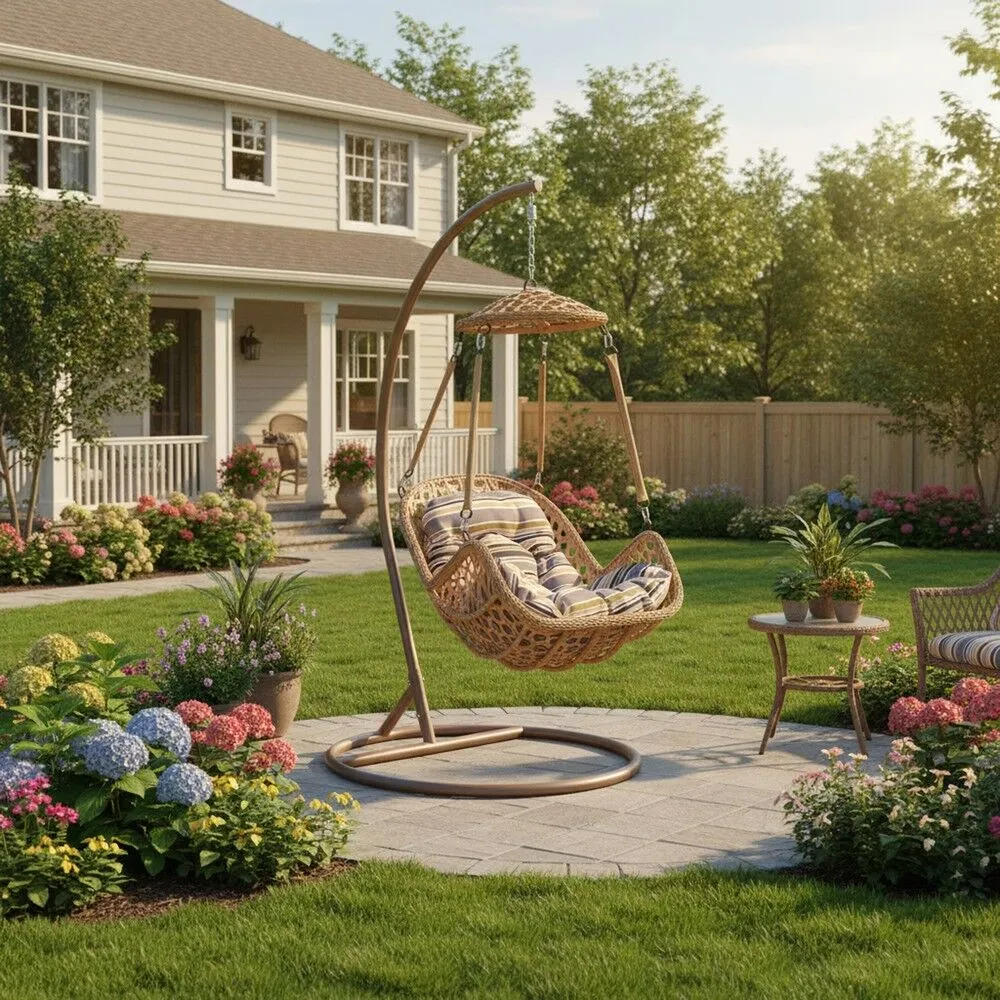أرجوحة حديقة أنيقة تضيف لمسة من المتعة والاسترخاء إلى مساحتك الخارجية، بتصميم مريح ومتين يناسب جميع الأعمار. مصنوعة من معدن قوي وراتان صناعي عالي الجودة لضمان المتانة ومقاومة العوامل الجوية. مثالية للجلوس، القراءة، أو الاستمتاع بنسيم الطبيعة في أوقات الفراغ.
