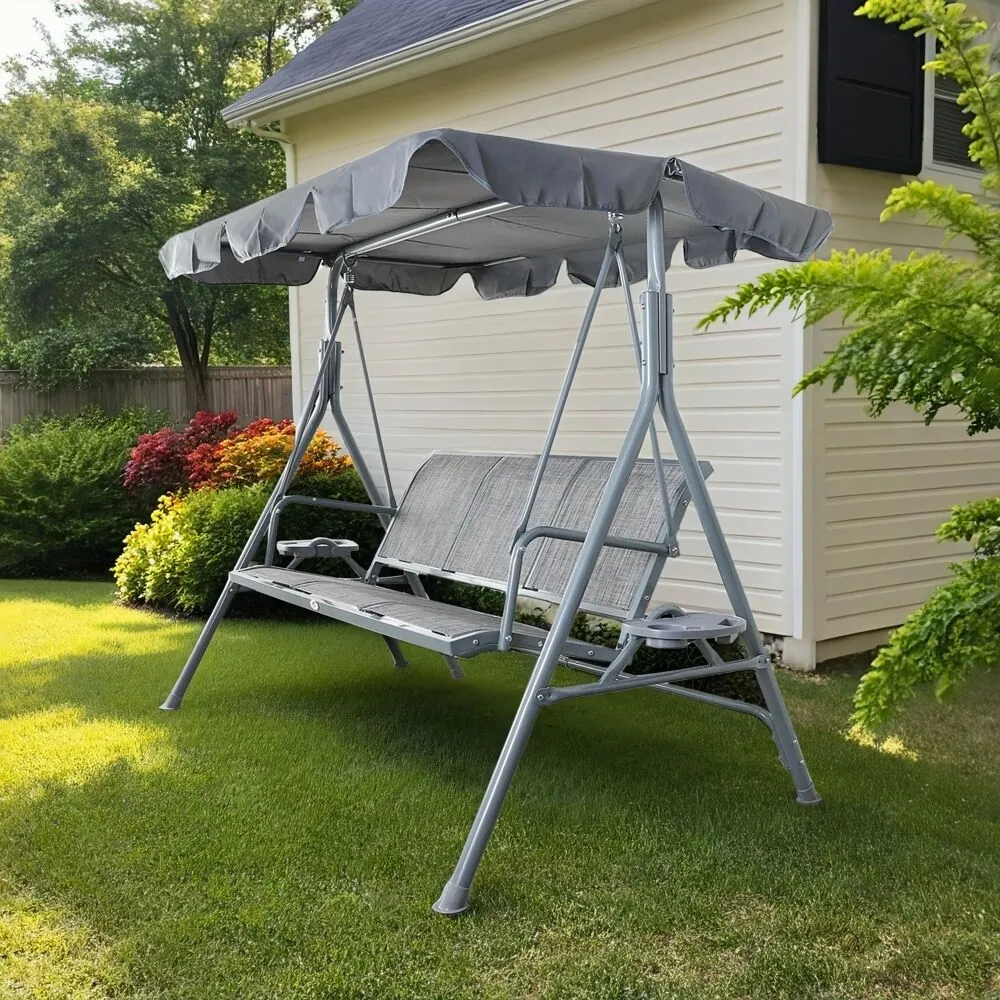 أرجوحة للحديقة بثلاثة مقاعد مع مظلة - رمادي