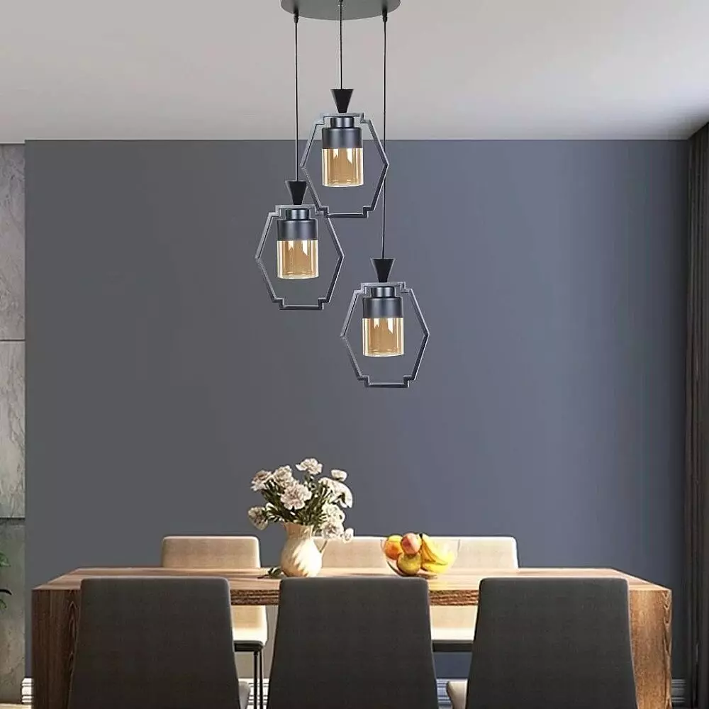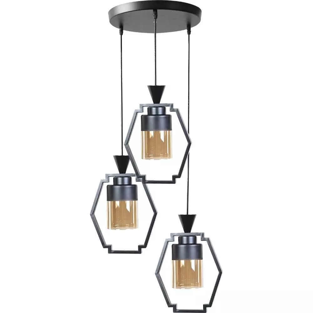 إنارة معلقة مودرن ثلاثي غايا - اسود