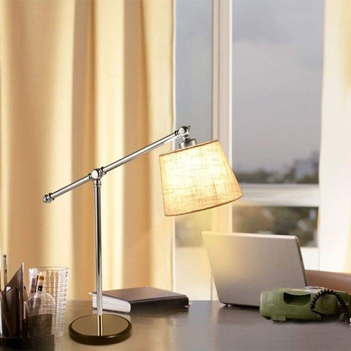 ابجورة طاولة فندقي كروم وشيد دائري بيج تحتاج عدد 1 لمبة E27 المقاس : الارتفاع 57 سم