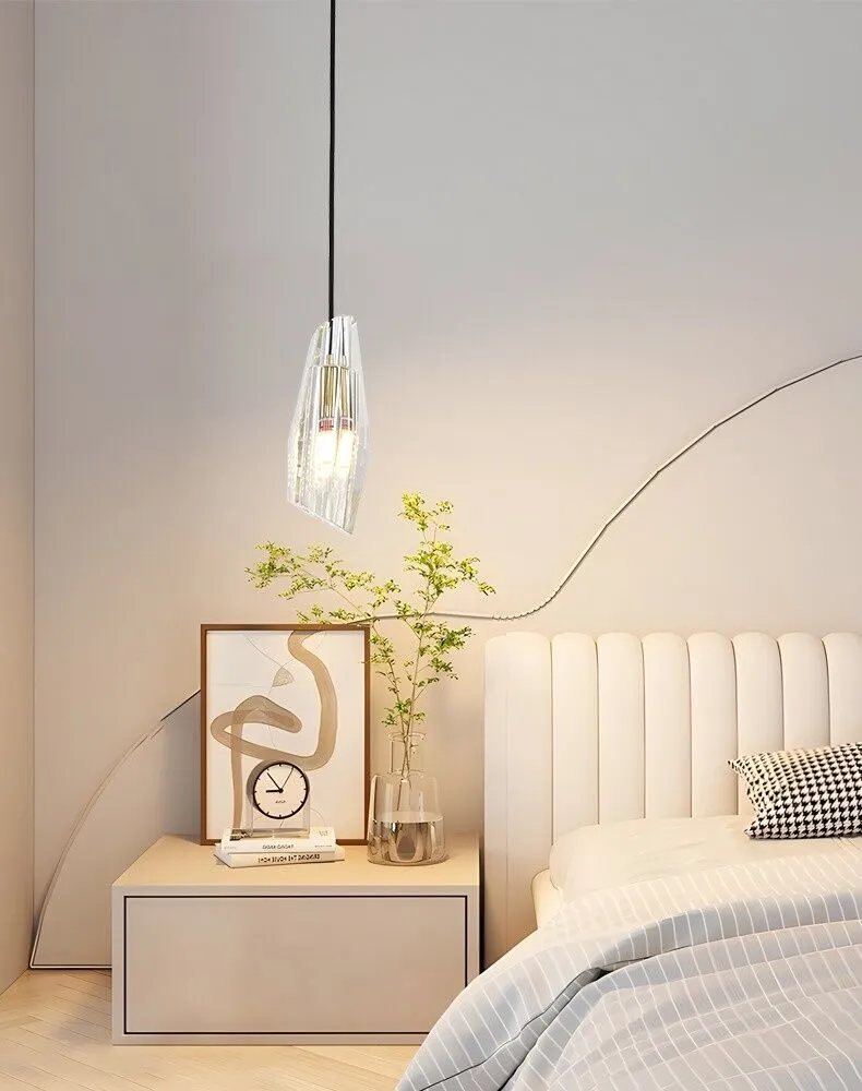 إنارة معلقة مودرن موديل ME-ICL0955-1 تتميز بتصميم عصري مع هيكل زجاجي شفاف على شكل هندسي فريد. تناسب هذه الإنارة المساحات الداخلية مثل غرف النوم أو المعيشة، حيث تضيف لمسة أنيقة للديكور. مصنوعة من مواد عالية الجودة وتعمل بلمبة E14، مما يضمن توزيع إضاءة مريح وفعال. الإنارة سهلة التركيب بفضل تصميمها المدروس كما يظهر في التعليمات المرفقة. تصميمها الفريد يجعلها قطعة جذابة وأنيقة للمساحات الداخلية.