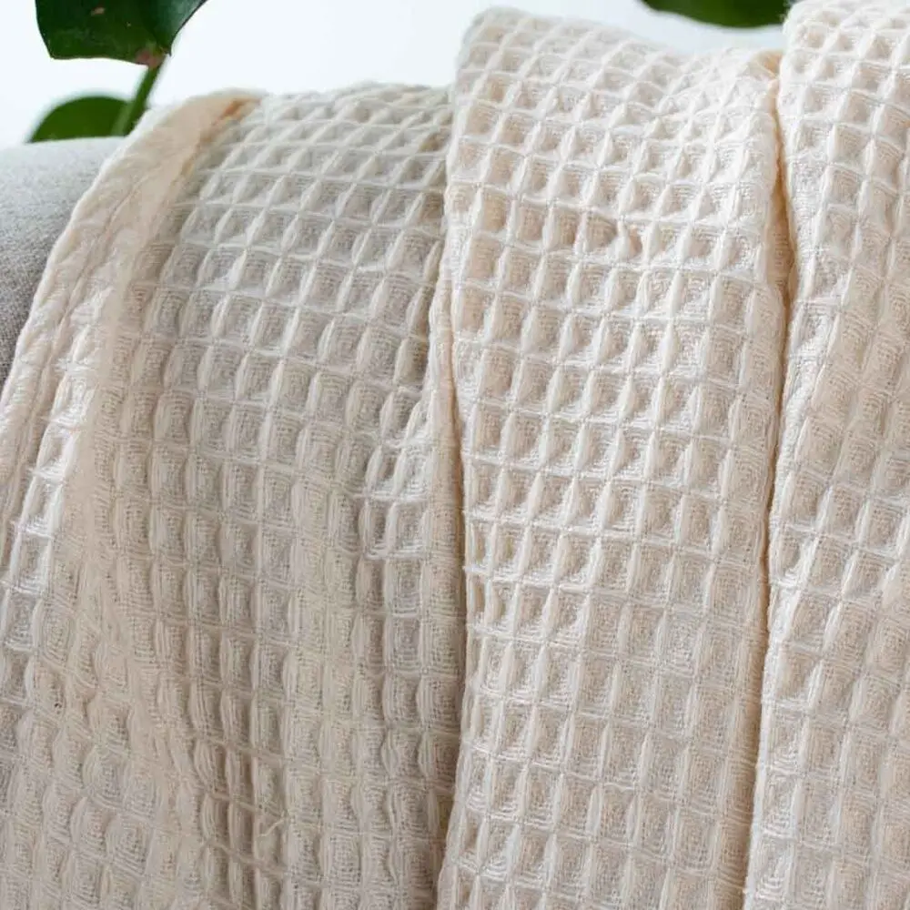 تتميز بطانية تيفولي بتصميم الوافل العصري ولونها البيج الأنيق الذي يتناغم بسهولة مع مختلف أنماط الديكور، مما يجعلها خيارًا مثاليًا للاستخدام اليومي خلال أجواء الصيف الحارة.