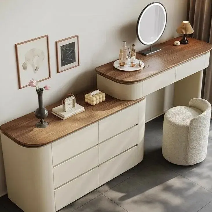طاولة تزيين مع مرآة شانسي - بيج فاتح