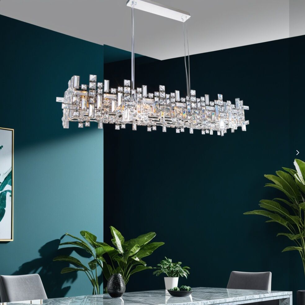 ثريا مستطيلة أنيقة بتصميم كلاسيكي فاخر مزينة بالكريستال المتلألئ، تضيف لمسة من الفخامة والرقي لأي مساحة داخلية. تمتد بطول 120 سم وارتفاع يصل إلى 150 سم مع إمكانية تعديل الارتفاع لتناسب مختلف التصاميم. تعمل بقاعدة لمبات E14 وتتسع لـ12 لمبة، ما يضمن إضاءة مشرقة ومتوازنة. مثالية للاستخدام في غرف الطعام، صالات الاستقبال، أو المساحات الكبيرة التي تحتاج إلى قطعة فنية تضفي جمالًا وإضاءة مثالية.