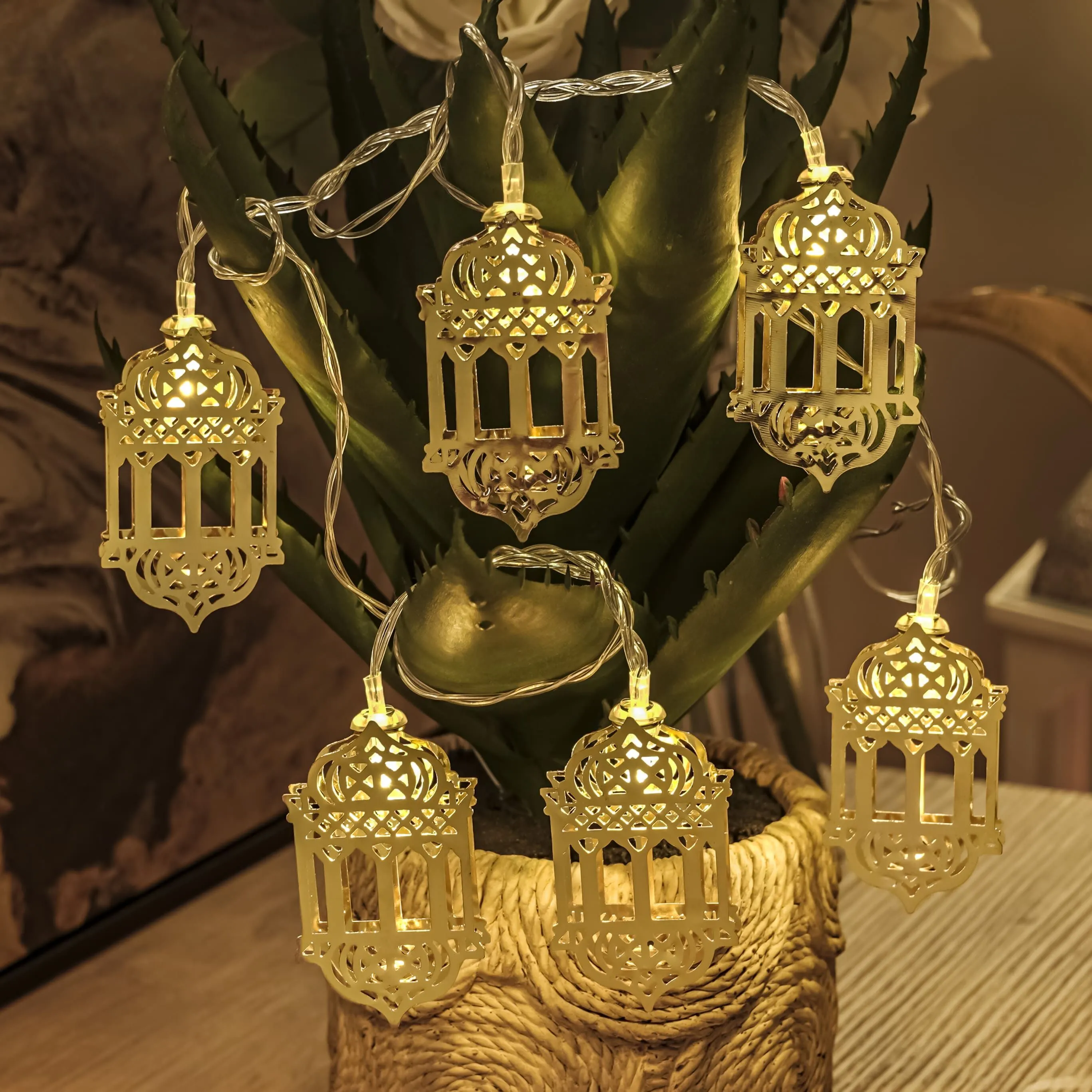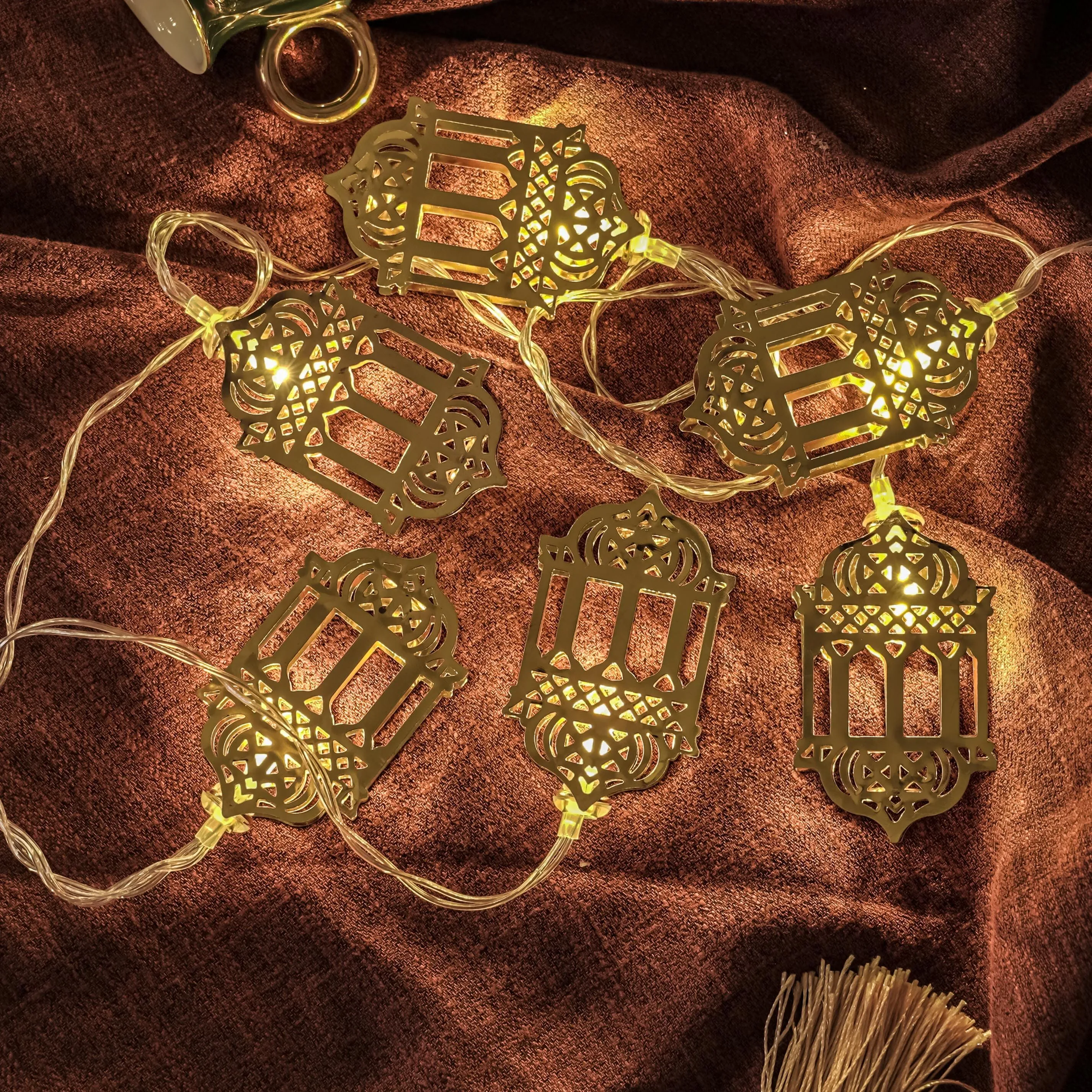 أنت تراجع:حبل اضاءة روفي يعمل بالبطاريات شكل فانوس - ذهبي