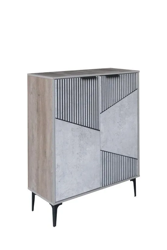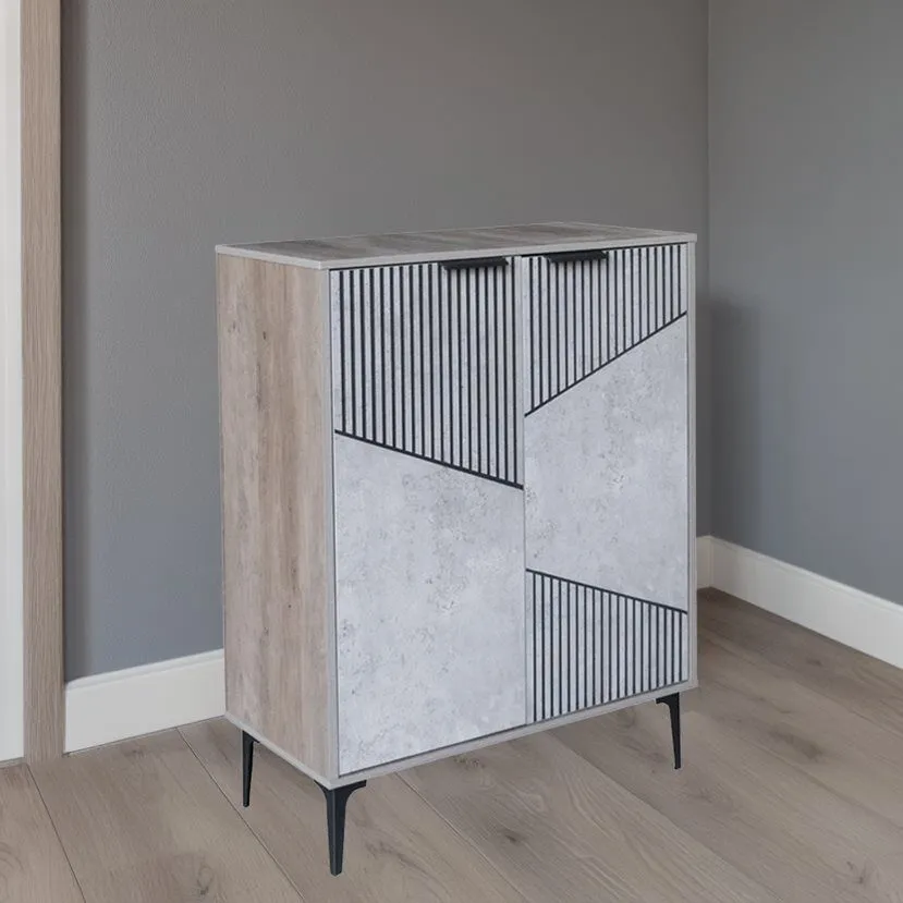 خزانة أحذية بابين خشب ماليزي روما - رمادي وخشبي