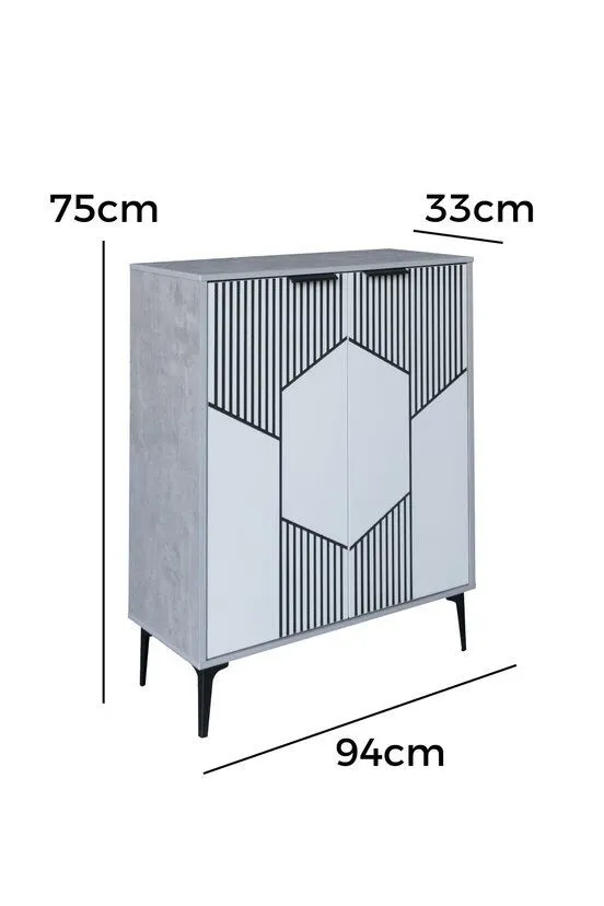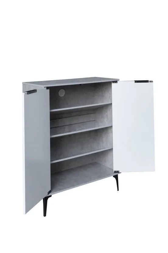 خزانة أحذية بابين خشب ماليزي لندن - رمادي وأبيض
