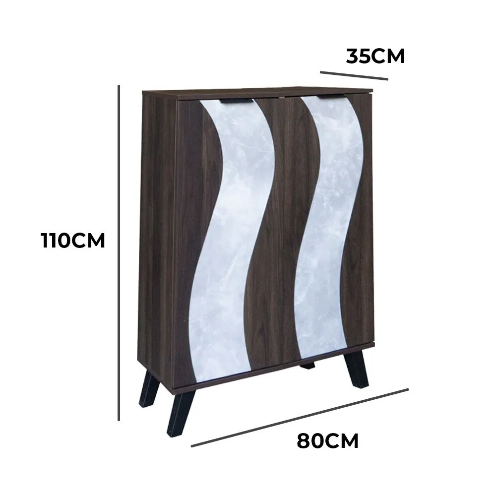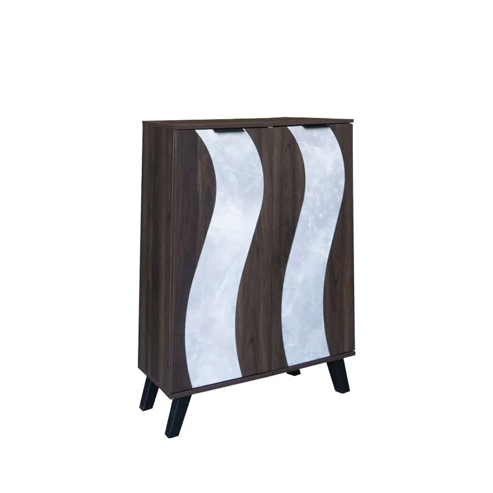 خزانة أحذية بابين خشب ماليزي 80 سم ديمير - بني ورمادي
