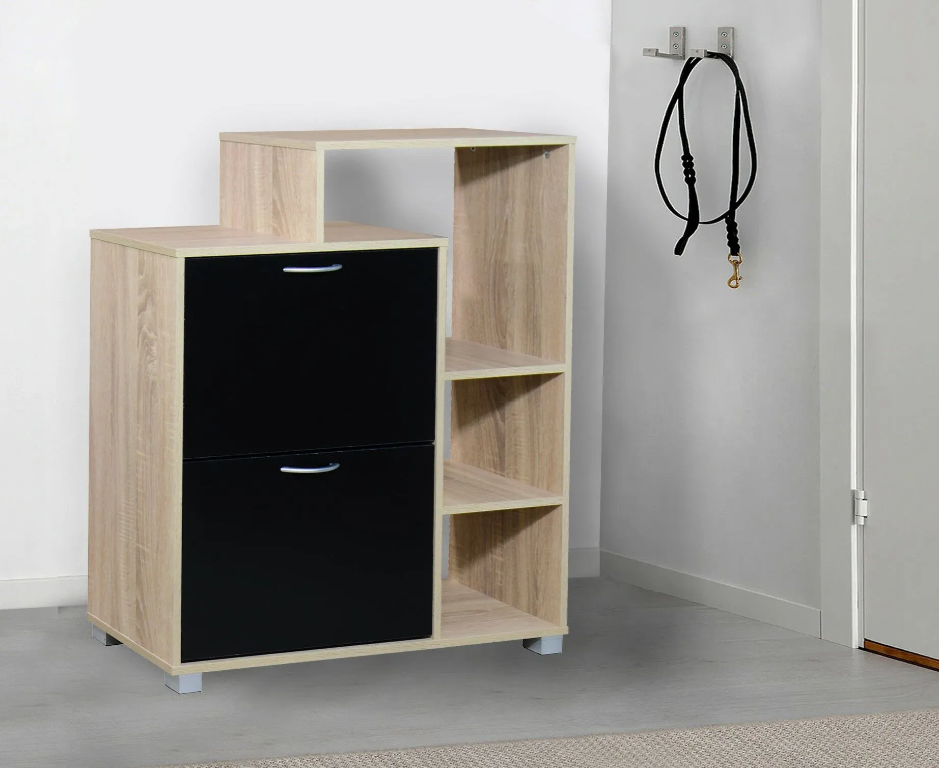 خزانة أحذية دورين مع رفوف خارجية فلينسيا - لون خشبي وأسود