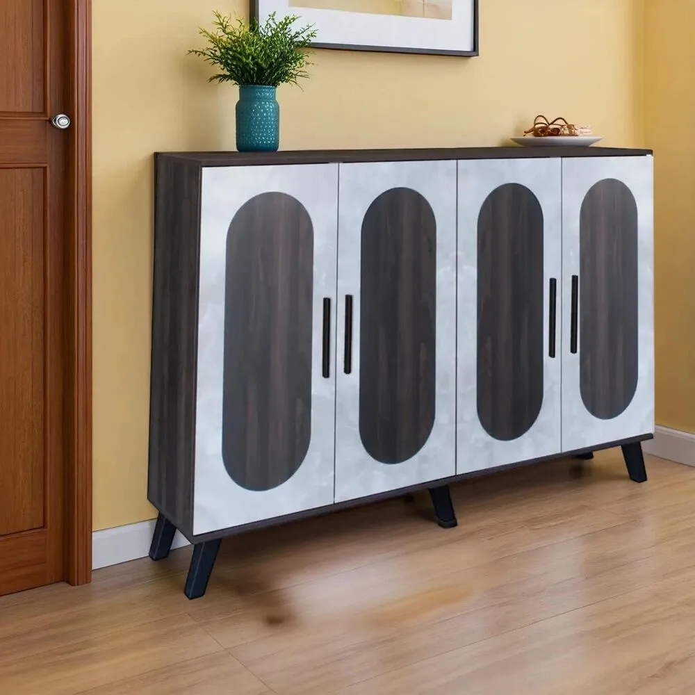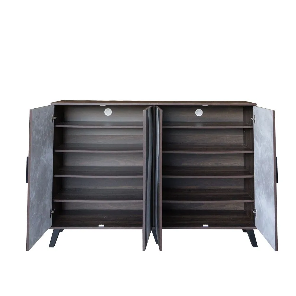 خزانة أحذية 4 أبواب خشب ماليزي نيكولاي - بني غامق ورمادي