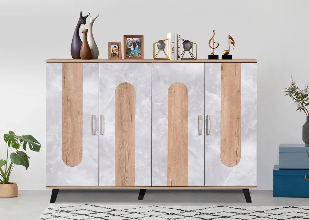 أنت تراجع:خزانة أحذية 4 أبواب سبيس - بيج ورمادي
