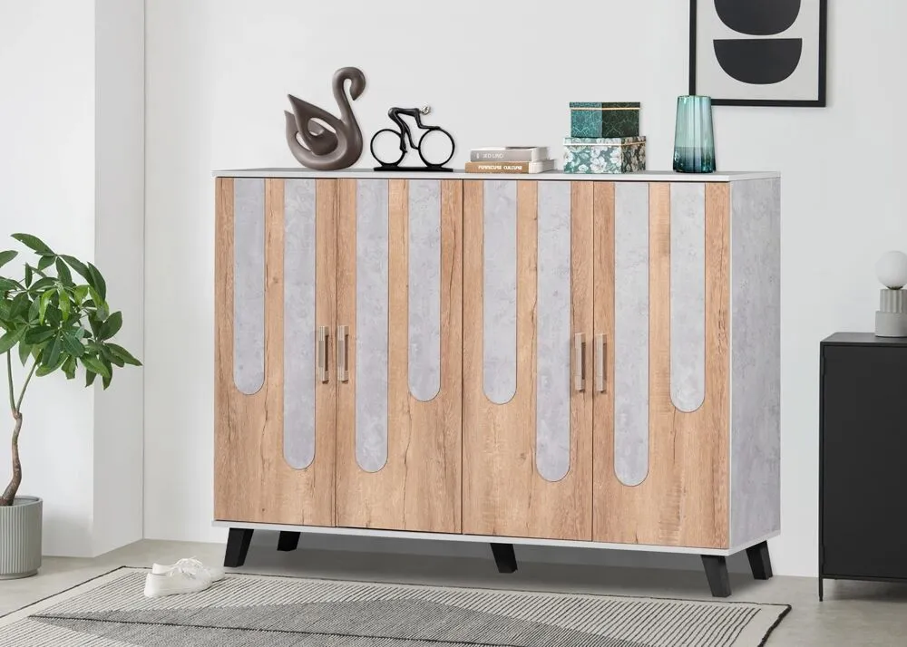 خزانة أحذية 4 أبواب ماي هوم - بيج ورمادي