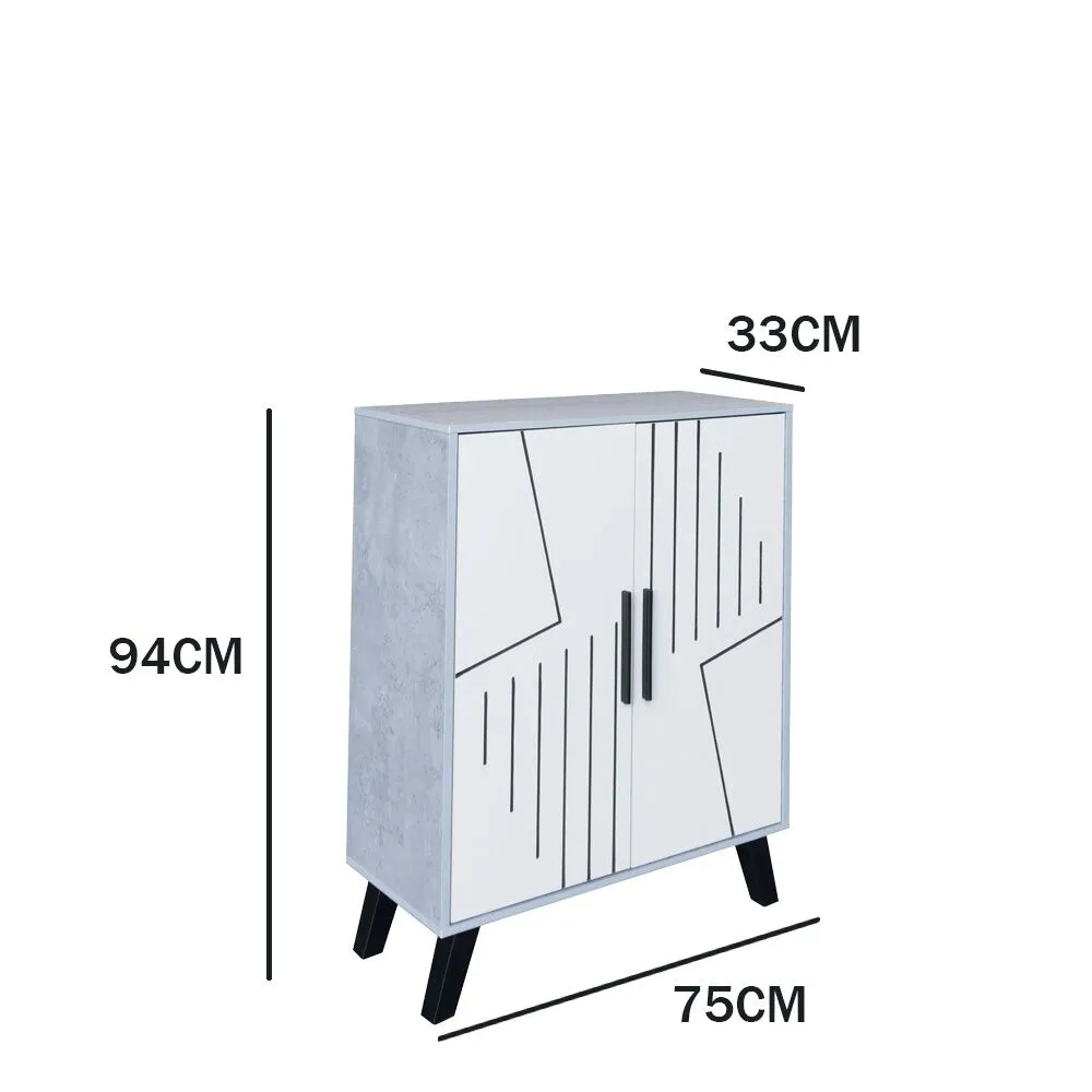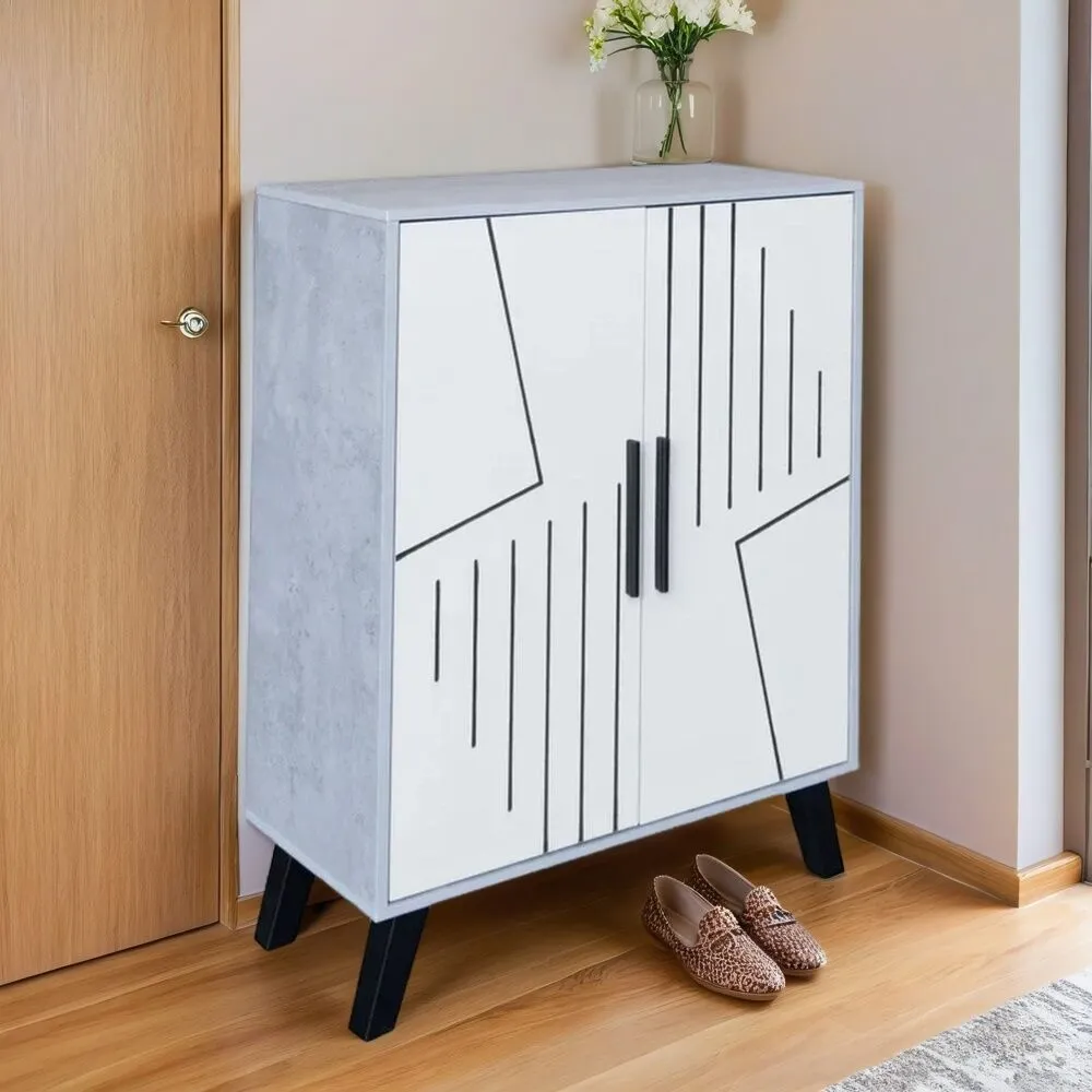 خزانة احذية بابين دالس - رمادي وابيض