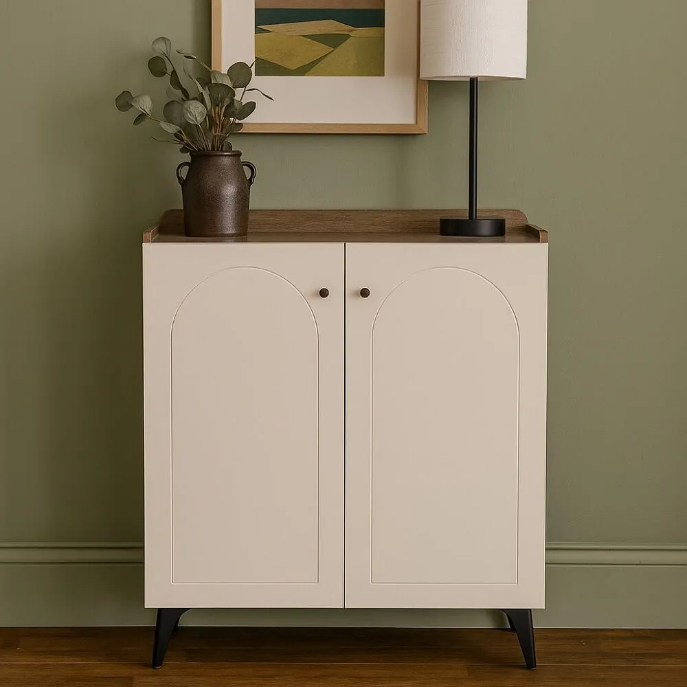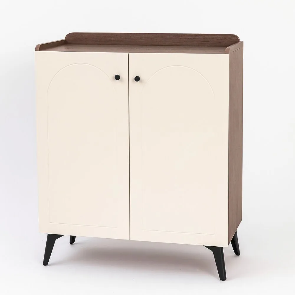 خزانة أحذية أنيقة وعملية، تتميز بتصميم مدمج يحتوي على بابين توفر مساحة كافية لتنظيم الأحذية بشكل مرتب. تجمع بين الوظيفة والتصميم العصري، مما يجعلها إضافة مثالية لأي مدخل أو غرفة. توفر سهولة الوصول إلى الأحذية وتحافظ على ترتيب المكان بشكل أنيق.