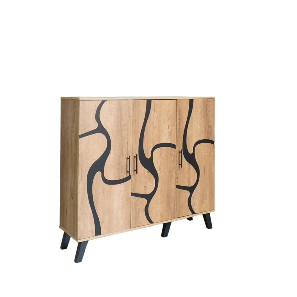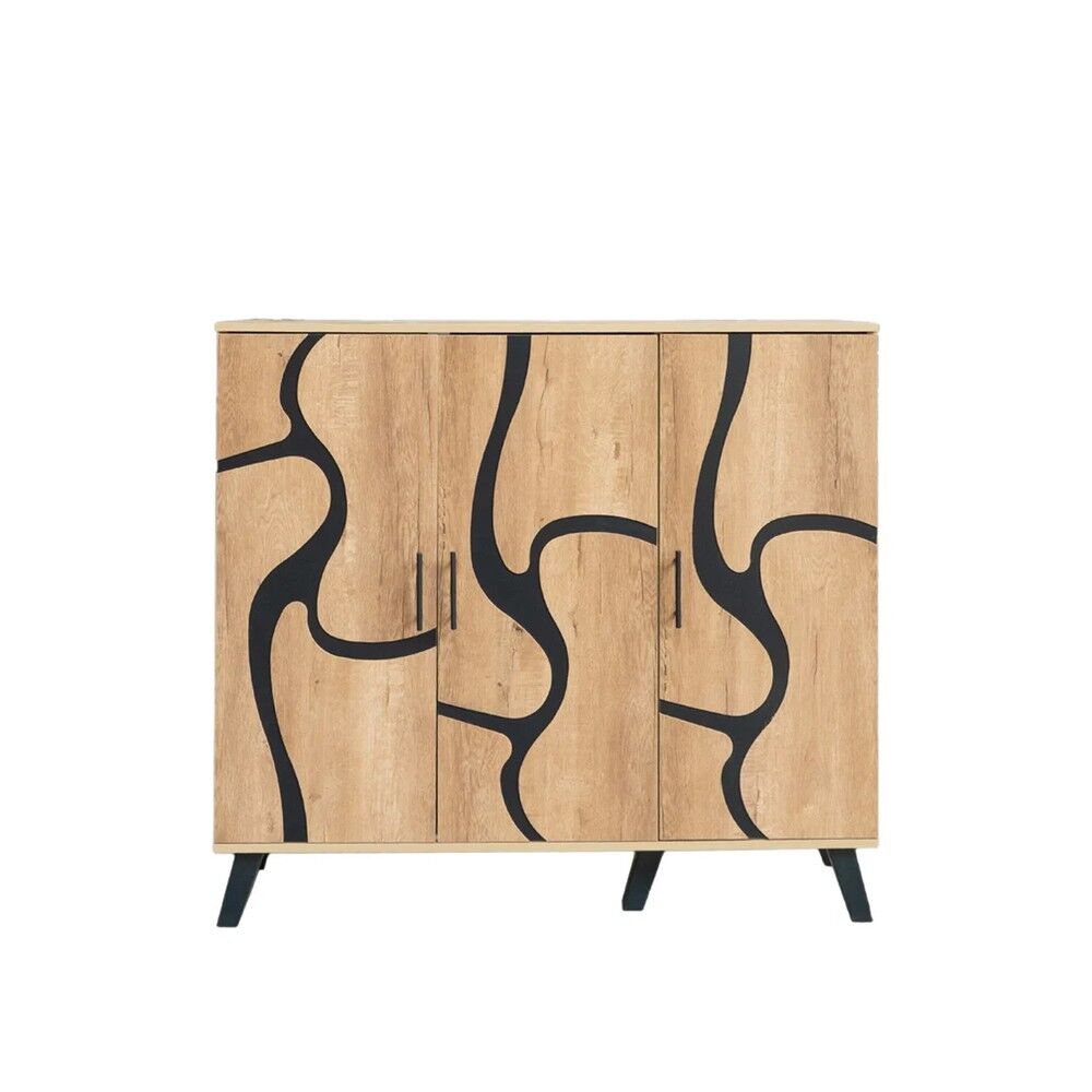 خزانة احذية 3 باب خشب ماليزي - بيج واسود
