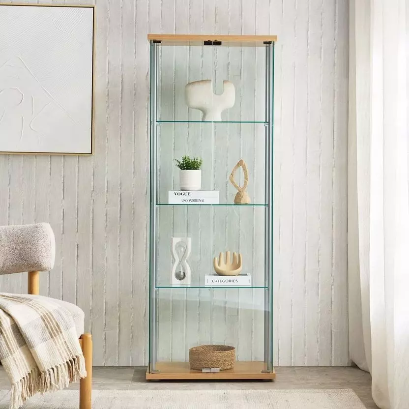 أنت تراجع:خزانة جانبية زجاج ببابين و3 رفوف من دوفر