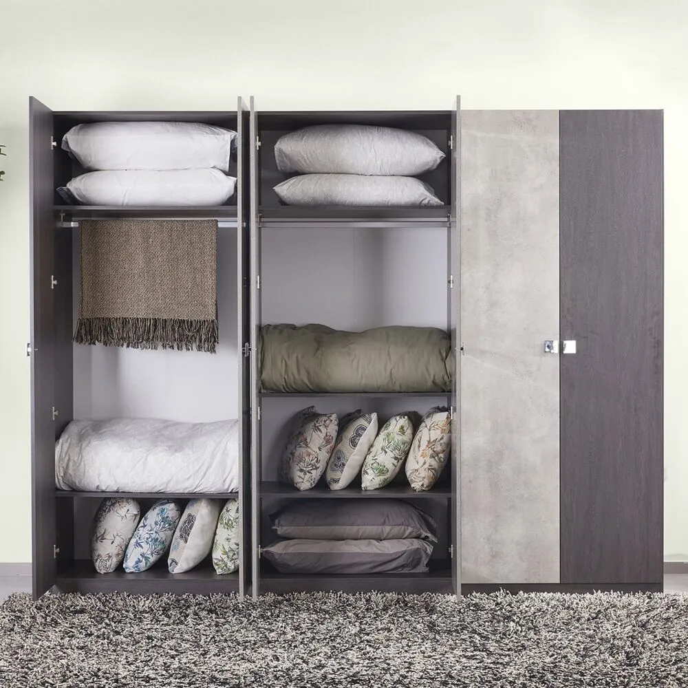 رتّبي ملابسك وأغراضك بصورة منظمة بالحصول عى دولاب الملابس المدهشة هذه، مصممة بمساحة وفيرة، تناسب ترتيب مستلزماتك وملابسك المتنوعة، بأرفف قابلة لتعديل حسب رغبتك، مع ثلاثة قضبان لتنظيم الملابس وتعليقها، تأتي بـ6 أبواب راقية، بمقابض أنيقة وسلسة، تضمن لك سهولة الفتح والغلق، مع مرآة ساحرة، لمراجعة إطلاتك وللتأكد من جمال مظهرك، مصنوعة من الخشب الهندسي عالي الجودة، مقاومة للبقع والخدش، مما يعزز من بقاؤها على حالتها الأصلية مدة طويلة، بلونين متابينين بصورة لافتة، تعكس ذوقك الرفيع، سهلة التنظيف والعناية بها. تستخدم صور المنتج المرفقة في أغراض التوضيح والتمثيل فقط.