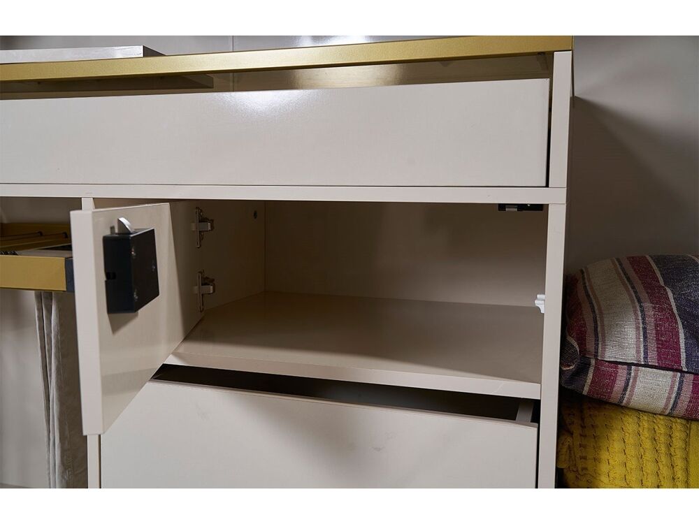 | الخامات | خشب ميلامين - واجهات زجاج تمبرد - مقابض معدنية - قاعدة من خشب MDF |
