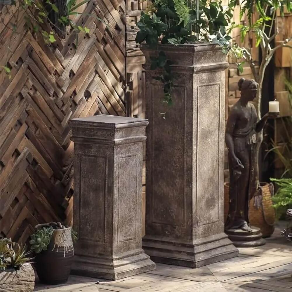تصميم فاخر بلمسة أثرية مستوحى من الطراز الأوروبي، يبرز جمال النباتات أو التماثيل الموضوعة عليها.