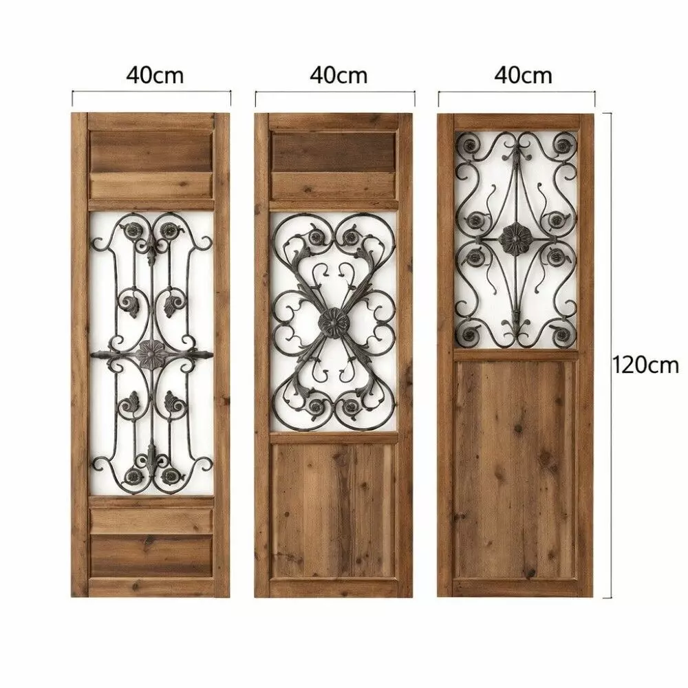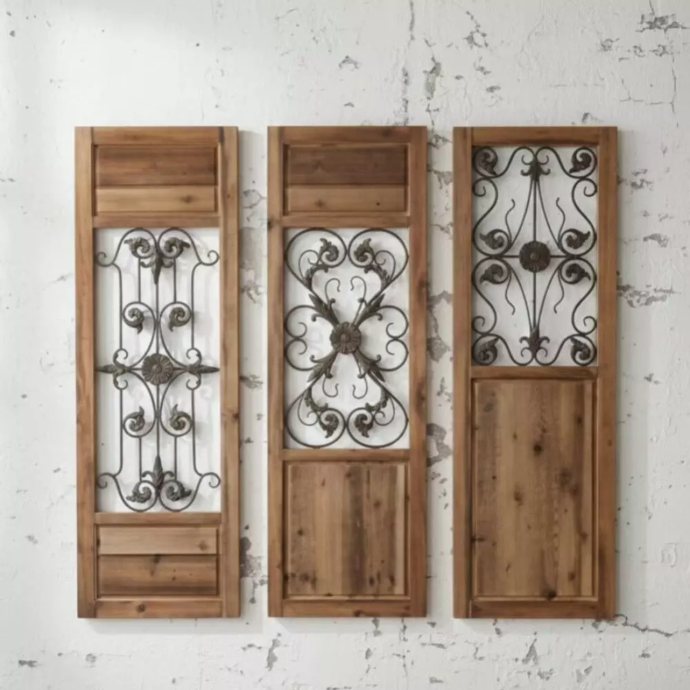 ديكور جداري هالين - 3 قطع : ديكور جداري مصنوع يدويًا من الخشب الطبيعي والحديد المشغول يجمع بين الفخامة الريفية والأصالة ليمنح الجدران لمسة فنية دافئة ومميزة، حيث يدمج بين تفاصيل الخشب الطبيعي ونعومة التصميم المعدني ليخلق قطعة ديكور فريدة تعكس الذوق الرفيع. يتميز بطابع ريفي وبوهيمي وكلاسيك عصري يجعله مناسبًا لمختلف المساحات مثل غرف المعيشة، زوايا القهوة، المداخل والممرات، كما يضفي حضورًا أنيقًا على المقاهي والمطاعم ذات الطابع الدافئ. يمكن تنسيقه بسهولة مع النباتات الخضراء والأثاث الخشبي ليحوّل الجدار البسيط إلى نقطة جذب جمالية تعكس إحساسًا بالدفء والحِرفية والجمال الطبيعي.