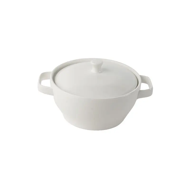 زبدية بورسلان بغطاء ارماز 22 سم زبدية دائرية الشكل مصنوعة من البورسلان بغطاء لتخزين الطعام بشكل فعال ومحافظة على حرارته.