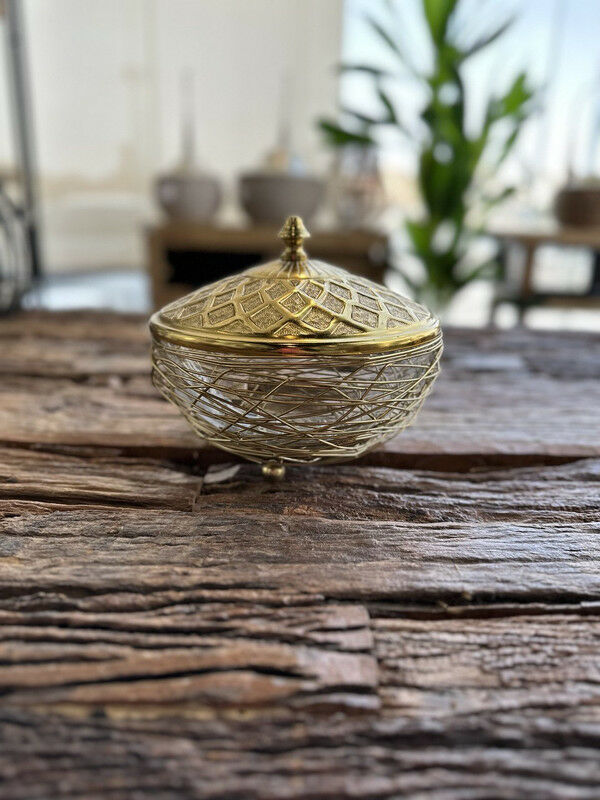 أضف لمسة مميزة الى مائدتك مع زبدية تقديم بغطاء من مجموعة نيست الحصرية حيث صنعت يدويا من معدن الألمنيوم بتصميم راقي مستوحى من عش العصفور بإلإضافة الى وعاء زجاجي من الداخل و غطاء من معدن الألمنيوم بتصميم رائع ليعطي لمسه و أجواء رمضانية بشكل مثالي.صنعت يدويا من أمهر الأيادي الحرفية.