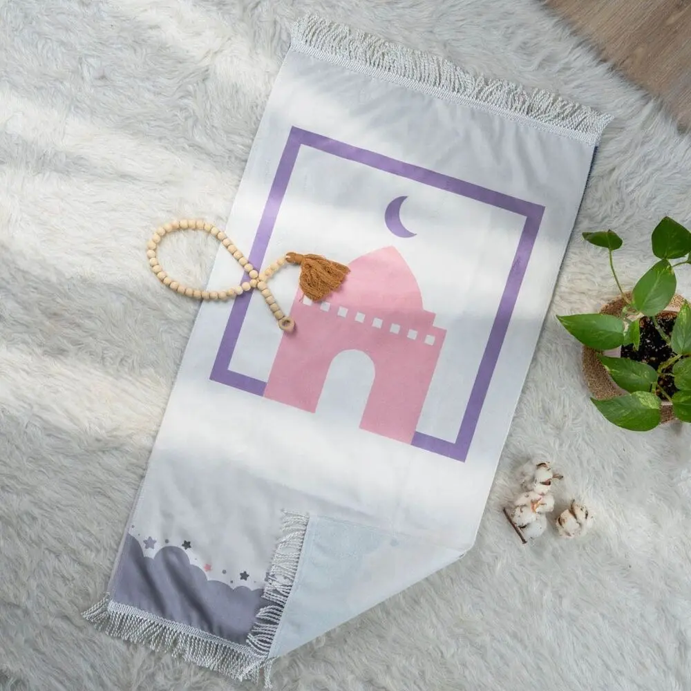 سجادة صلاة أطفال 50x90 سم - أبيض ووردي