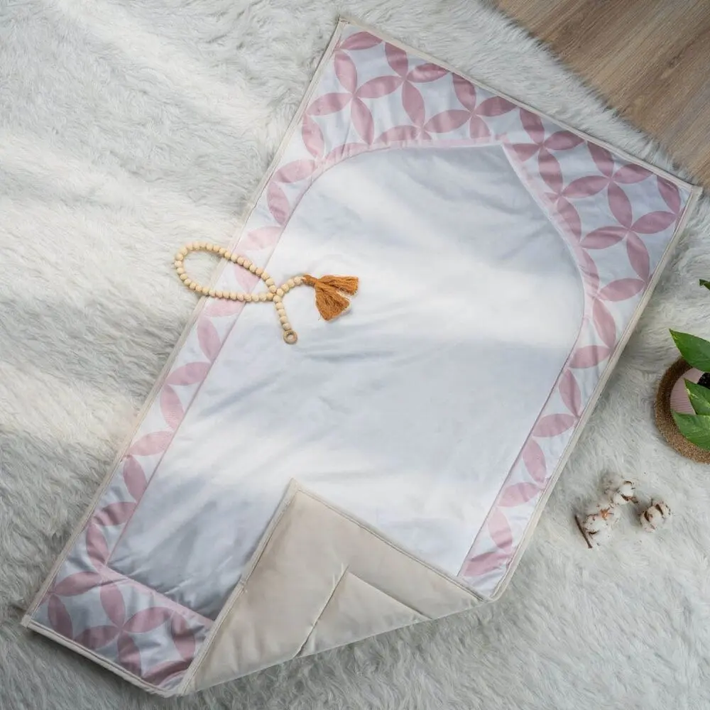 أنت تراجع:سجادة صلاة 70x120 سم - ابيض ووردي
