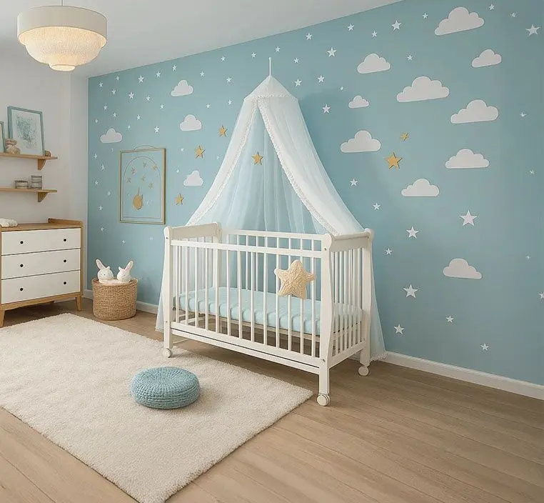 سرير أطفال عملي بتصميم أنيق ينسجم مع غرف المواليد الحديثة ويضفي لمسة مرتبة وناعمة على المساحة.