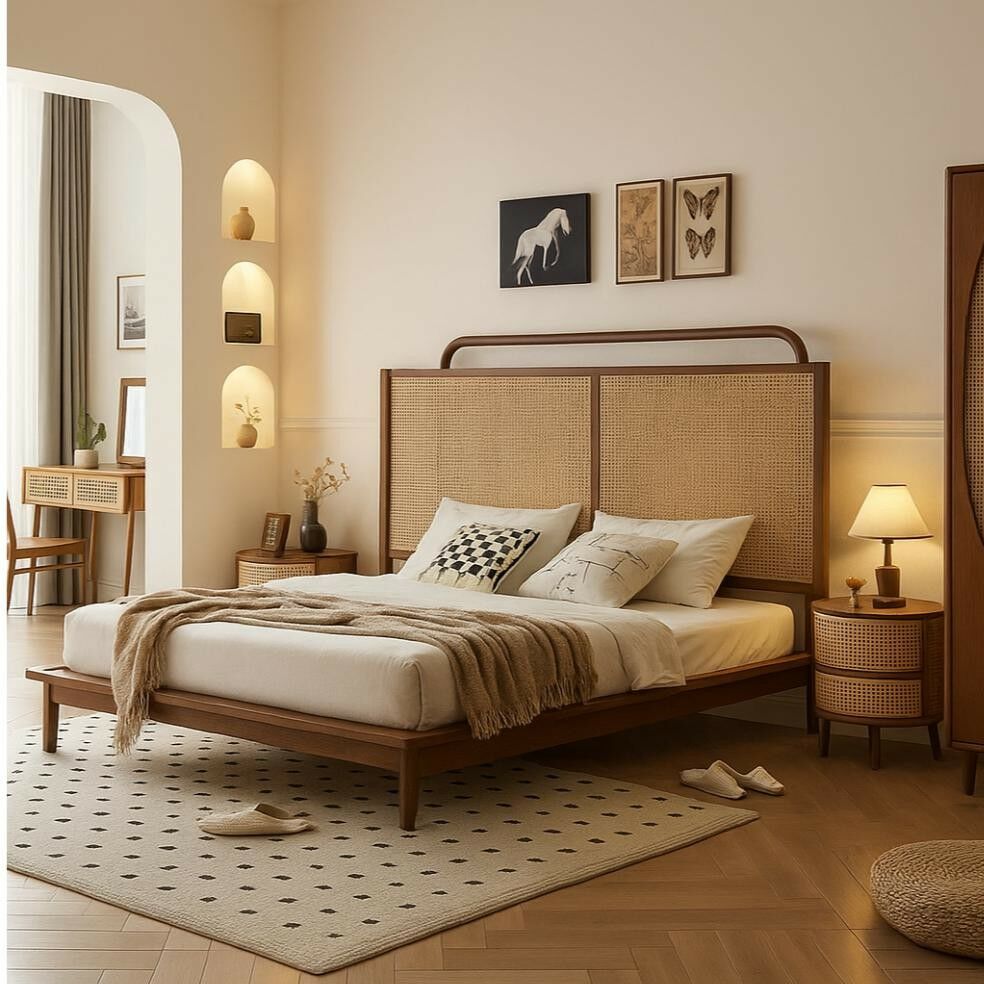 سرير كينغ راتان طبيعي 180×200 سم من ويلو - بني وبيج . هو الخيار المثالي لمن يبحث عن الراحة والأناقة في نفس الوقت.
