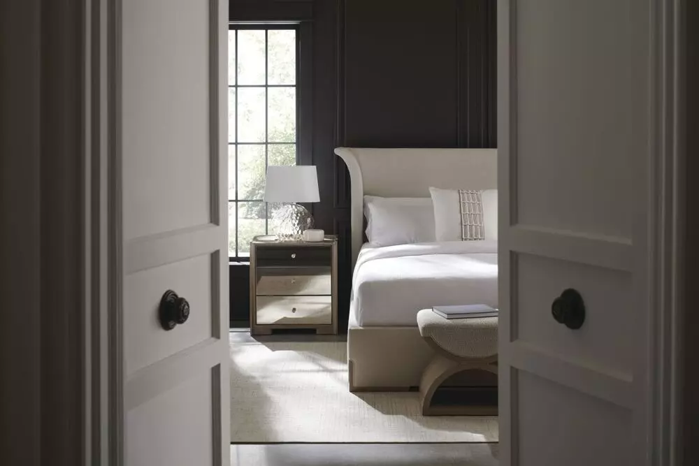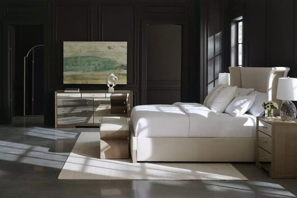 استمتع بالنوم الهانئ مع هذا السرير الفريد من كراكول كلاسيك. يتميز السرير برأسية مرتفعة متوهجة وأجنحة مقوسة تضيف لمسة من الدراما والأناقة إلى غرفة نومك. تضيف الألواح المزخرفة المبطنة بقشرة الخشب اليابانية لمسة فنية، بينما تتناغم الأرجل المتناسقة مع لمسة نهائية من خشب وودلاند الرمادي لإضفاء لمسة من الأناقة الكلاسيكية. يتميز السرير بتنجيد كامل من نسيج لامع عالي الأداء، مما يمنحه مظهرًا فاخرًا يدوم طويلاً. عرض القطعة: 239.7 سم عمق القطعة: 222.5 سم ارتفاع القطعة: 142 سم مادة القطعة: خشب البتولا لمسة القطعة النهائية: وودلاند الرمادي ميزات القطعة: سرير مغطى بالكامل، لوح رأس خارجي من خشب وودلاند الرمادي، أرجل من خشب وودلاند الرمادي