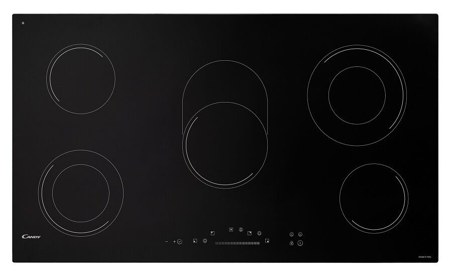 5 مناطق للطهي - 3 مزدوج - التحكم باللمس / شريط التمرير المركزي - تنبيه التسخين/الانسكاب الزائد - زجاج أسود- 8500 واط - 240 -220 فولت / 380- 415 فولت - 3 نيوتن- 50/ 60 هرتز