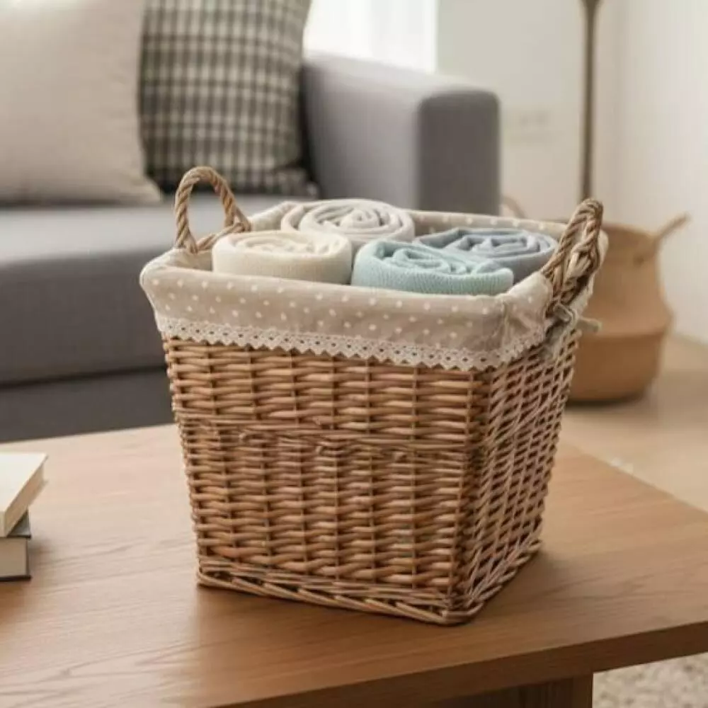 سلة خوص برايف : سلة خوص أنيقة مع بطانة قطنية مصنوعة من خامات طبيعية تمنحها طابعًا ريفيًا دافئًا يضيف لمسة جمالية وهادئة لأي مساحة داخل المنزل. تتميز بتصميم عملي وبسيط يجعلها مناسبة لتنظيم الأغراض اليومية أو حفظ المخبوزات أو استخدامها لتقديم الهدايا بطريقة مرتبة وأنيقة. كما يمكن توظيفها كقطعة ديكور تضيف إحساسًا طبيعيًا في المطبخ أو غرفة المعيشة، لتجمع بين الجمال والوظيفة في تصميم واحد عملي وأنيق.