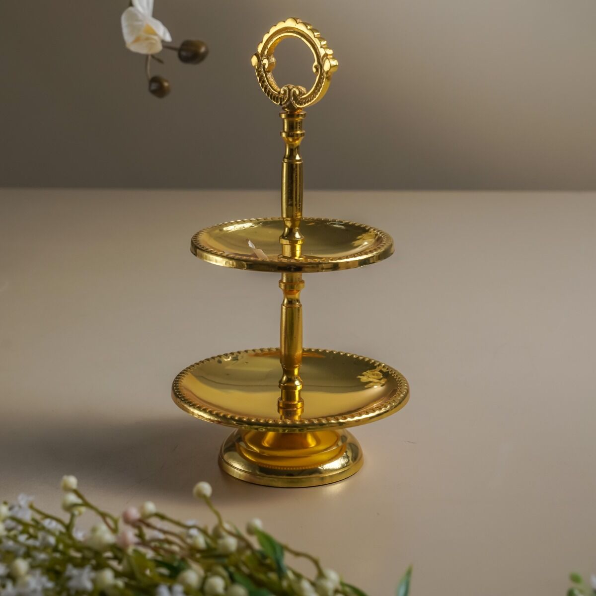 صحن تقديم ضيافة طبقتين سيرين - لون ذهبي