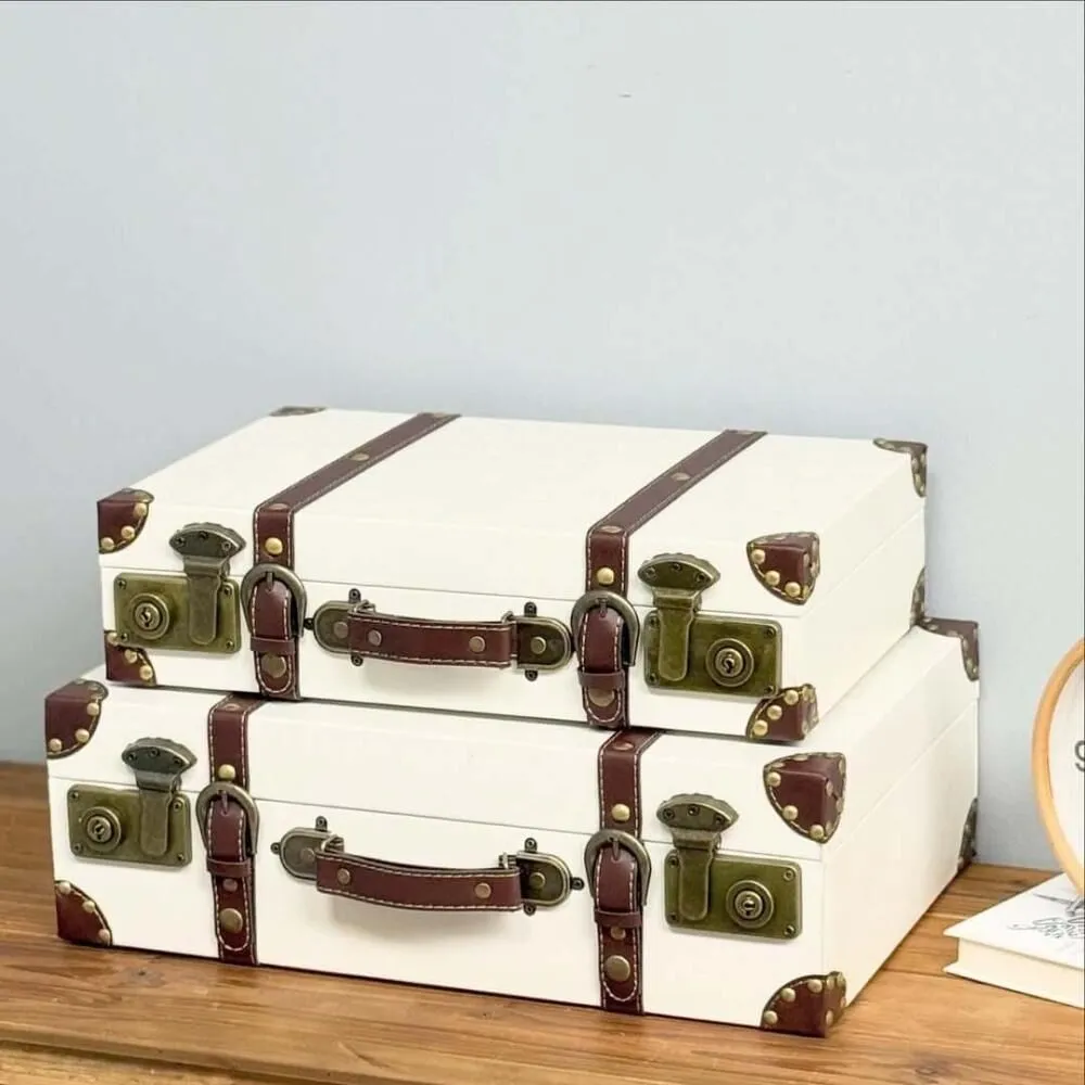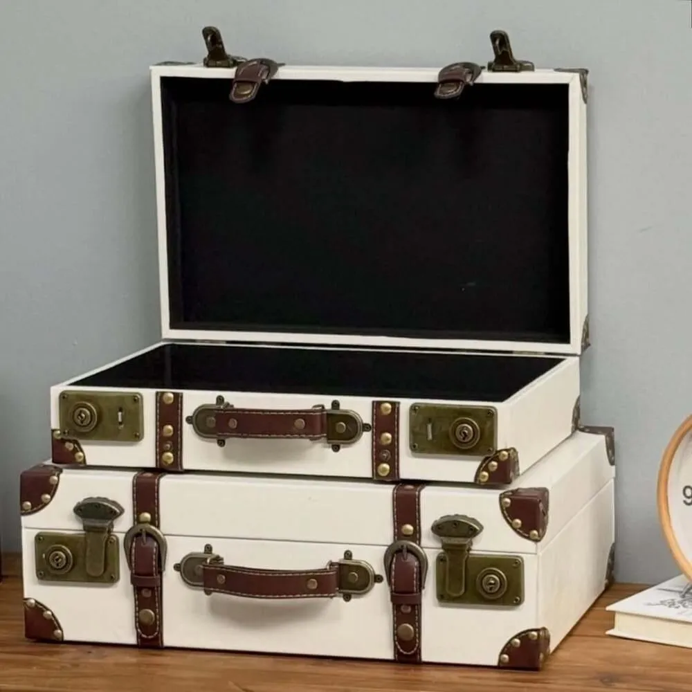 طقم شنط جلد ابيض خشب ملبس بجلد صناعي المقبض بلاستيك . الاقفال حديد تأتي بتصميم أنيق ولمسة فاخرة اختاري التميز مع هذه الصندوق تخزين المصنوعة من جلد صناعي عالي الجودة، بتفاصيل ناعمة وتصميم كلاسيكي يضفي لمسة راقية على أي مساحة توضع فيها.