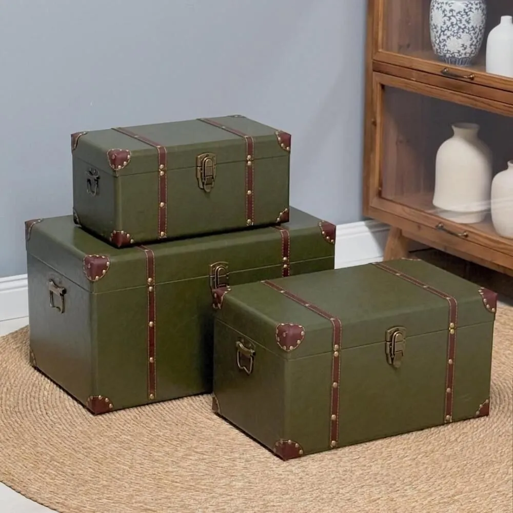أنت تراجع:صندوق جلد 3 قطع فينتيج - اخضر