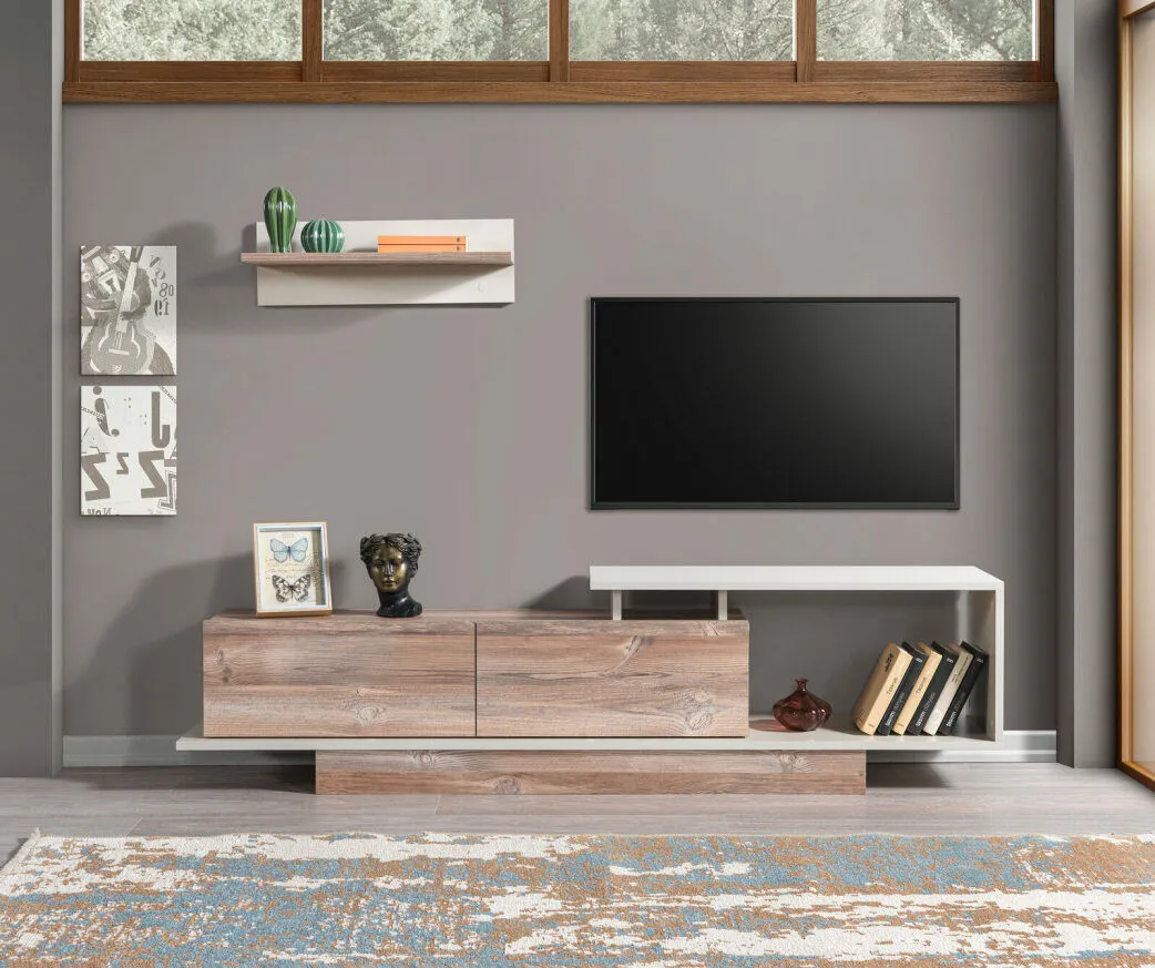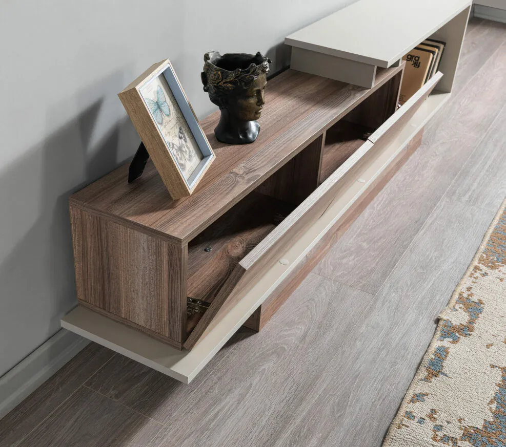 طاولة تلفاز تجمع بين العملية والشكل الأنيق. وتخلق الروح العصرية فى مختلف أنحاء منزلكِ فهى من أفضل أنواع طاولات تلفزيون لم تكتفى طاولة التلفزيون على الشكل الأنيق فحسب، بل هى من القطع الرائعة التي تتميز بالعملية المميزة التي تجعلكِ تتمكنين من خلق حالة من النظام فى منزلك باستخدام قطعة تجمع بين المتانة والجمال والعملية.