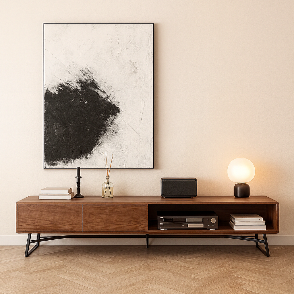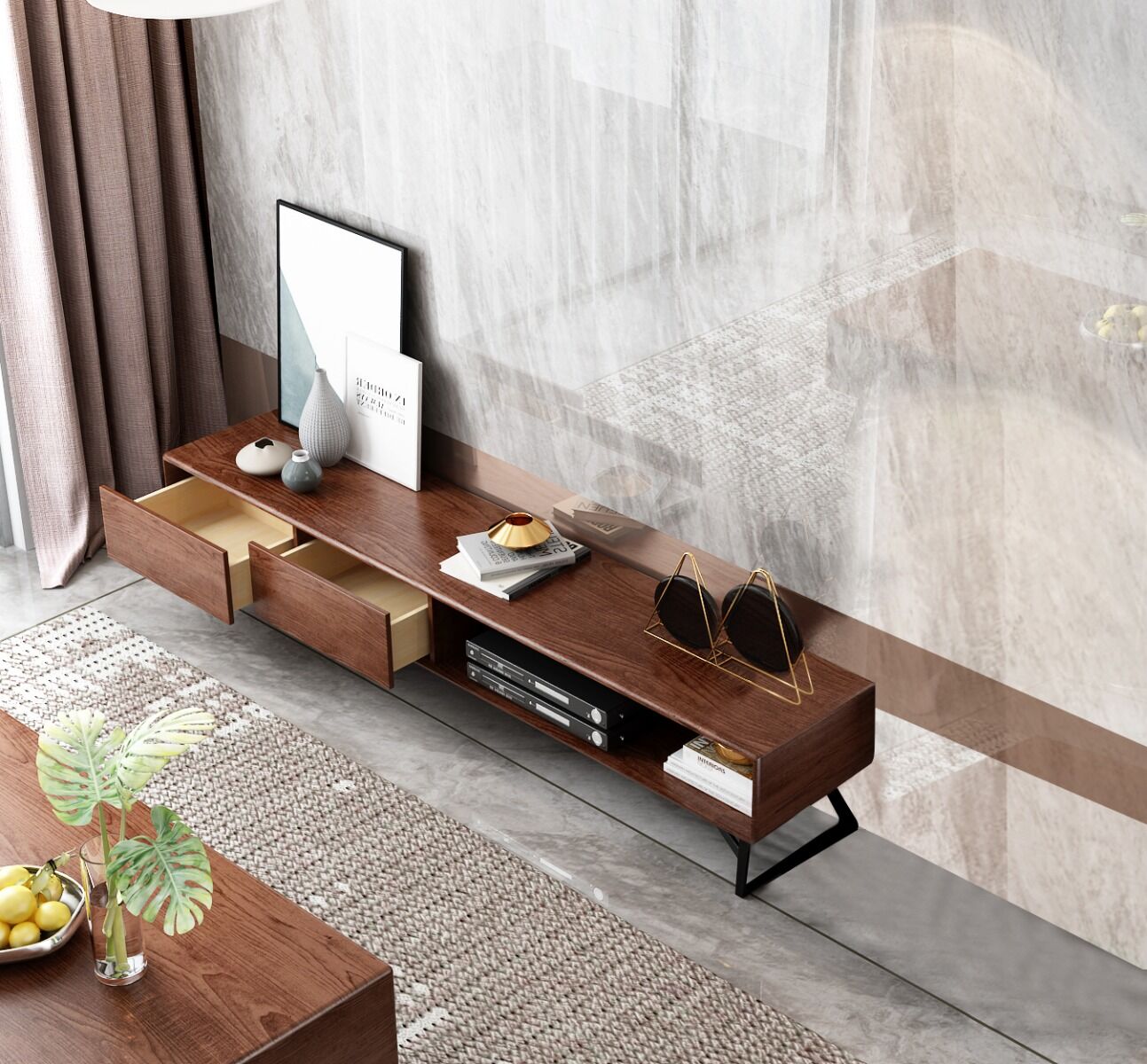 جمال عصري: بلونها البني الغني ولمساتها السوداء الأنيقة، تضفي طاولة تلفزيون بريكا لمسة فاخرة على أي ديكور منزلي