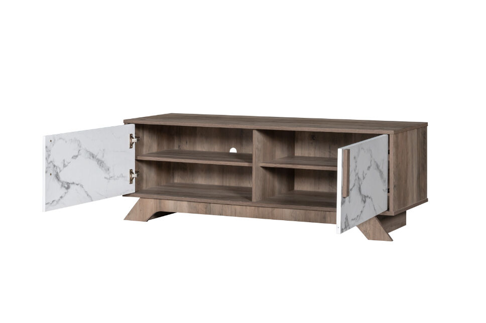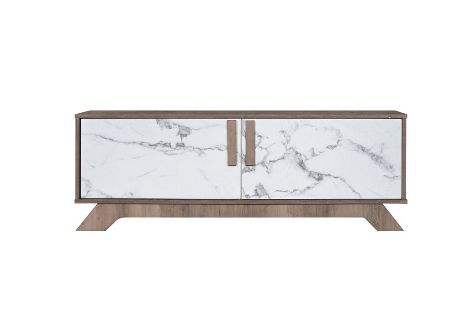 طاولة تلفزيون خشب ماليزي - رمادي خشبي وأبيض رخامي