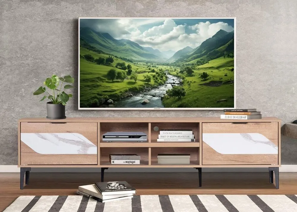 طاولة تلفزيون رامسيس - خشبي وأبيض