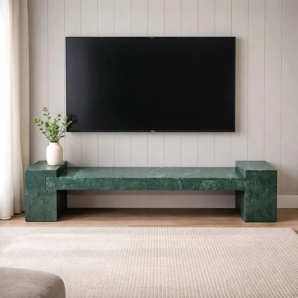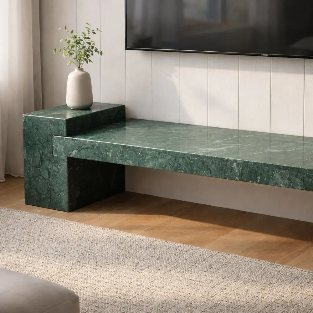 طاولة تلفزيون من الرخام الطبيعي الأخضر