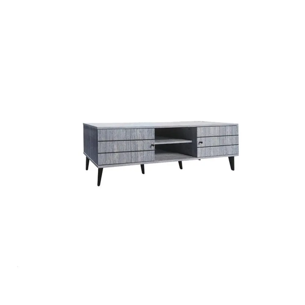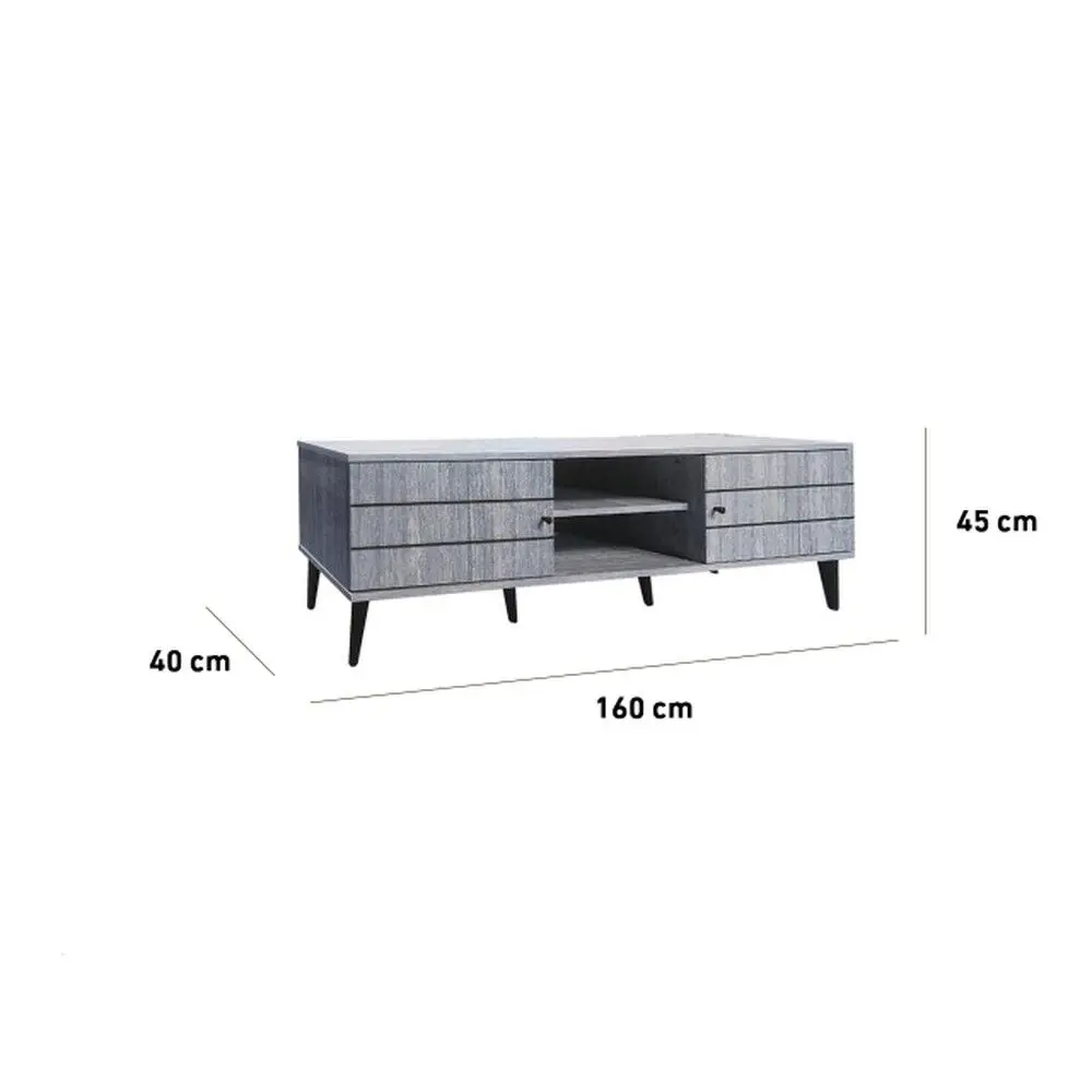 طاولة تلفزيون عصرية بعرض 160 سم مصنوعة من الخشب الماليزي المتين، تحتوي على درجين لتخزين المستلزمات المختلفة، إضافة إلى أرفف مفتوحة مثالية لوضع الأجهزة الإلكترونية أو الديكورات. تصميم أنيق يجمع بين الجودة والعملية.