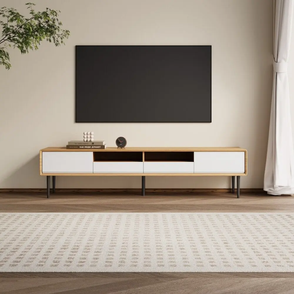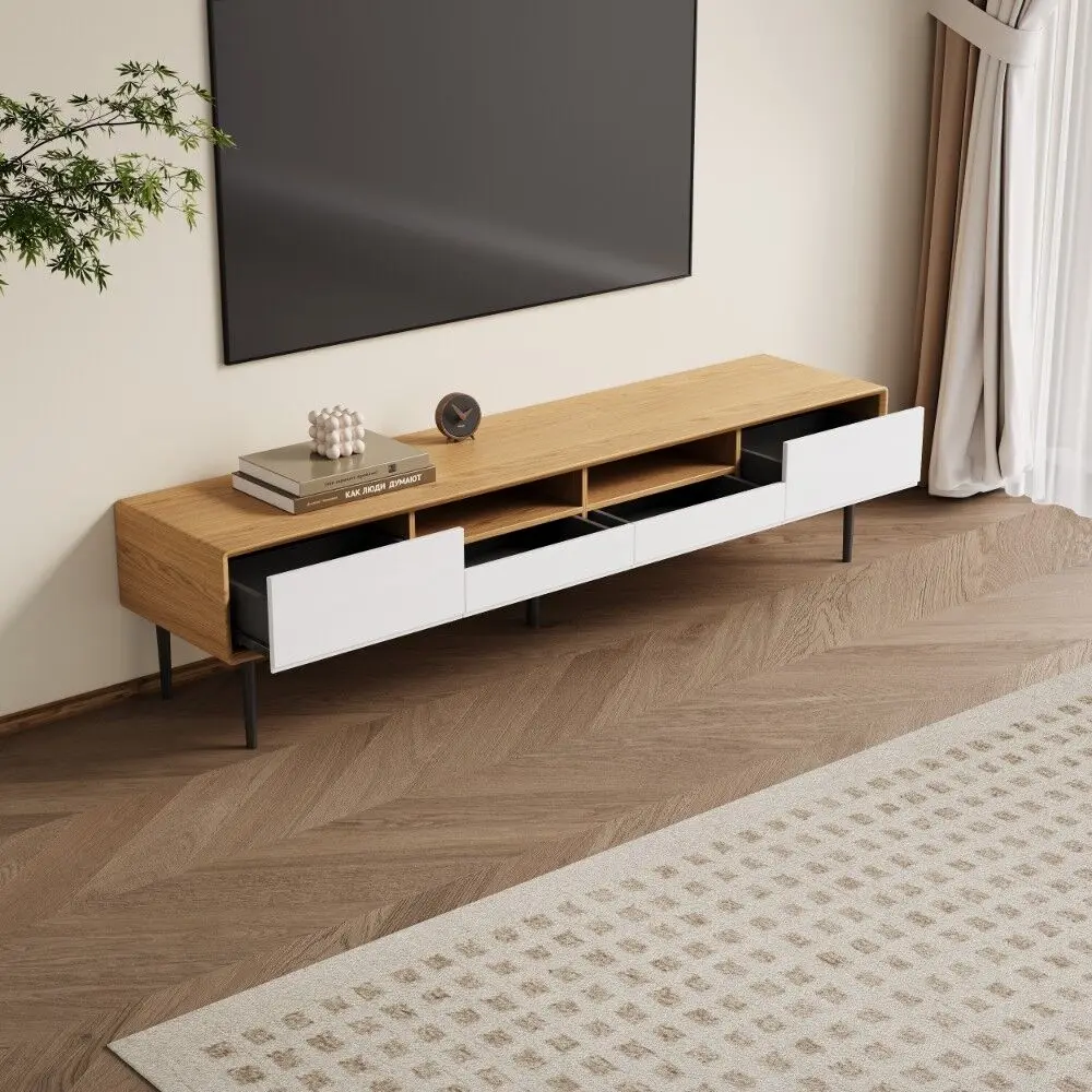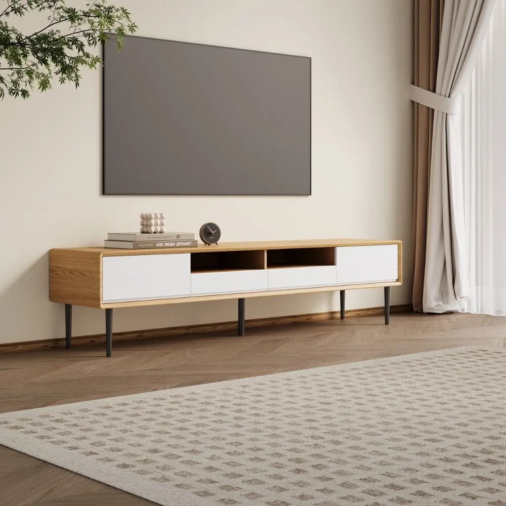 مصنوعة من قشرة خشب بلون خشب طبيعي + طلاء أبيض + أرجل فولاذ كربوني سوداء، مع هيكل خشبي صلب يضمن المتانة والثبات.اللون:
