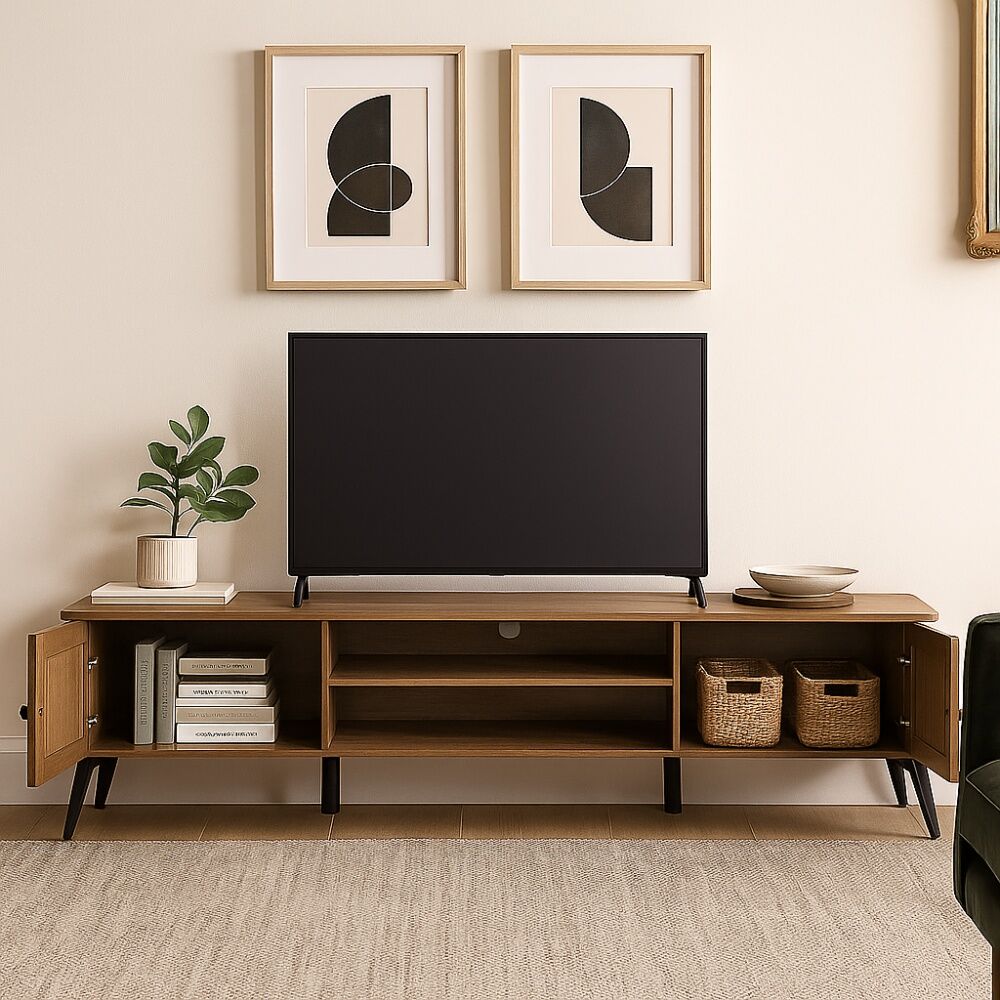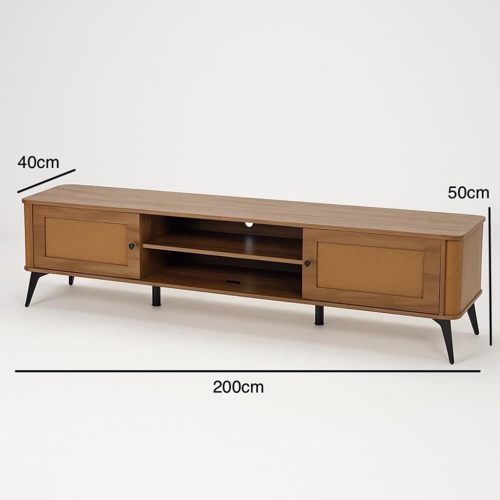 طاولة تلفزيون أنيقة وعملية، تتميز بتصميم واسع يعرض الأجهزة الإلكترونية بشكل مرتب. عرضها 200 سم يوفر مساحة كافية لاستيعاب التلفزيون والأجهزة الأخرى، مما يجعلها خيارًا مثاليًا لغرف المعيشة. تضفي لمسة من الترتيب والأناقة على المكان، مع سهولة الوصول والتنظيم.