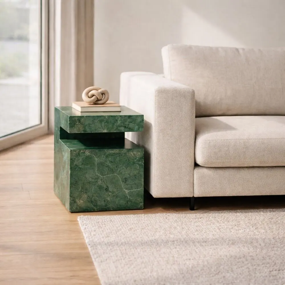 طاولة جانبية رخام طبيعي - من مجموعة فيونا - اخضر