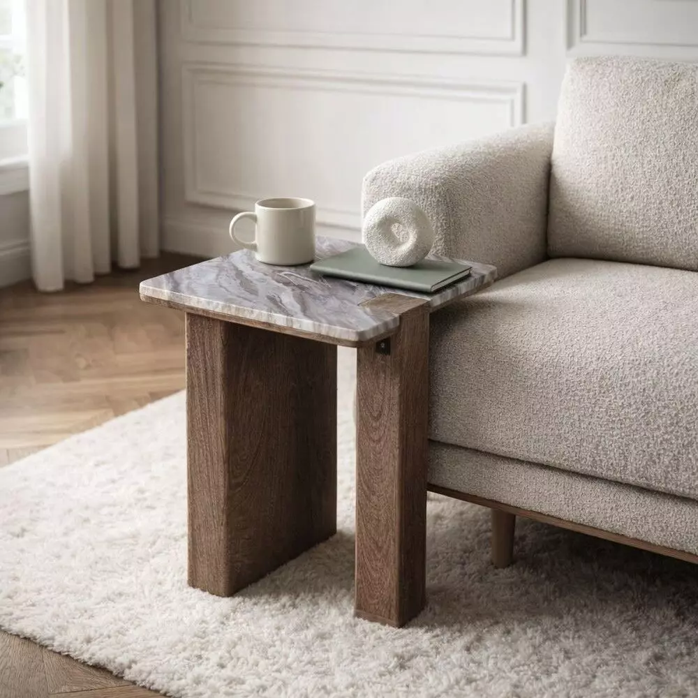 طاولة جانبية سطح رخام كارلا - بني ورمادي